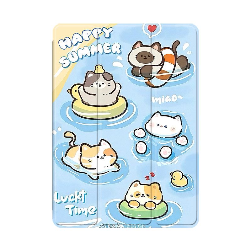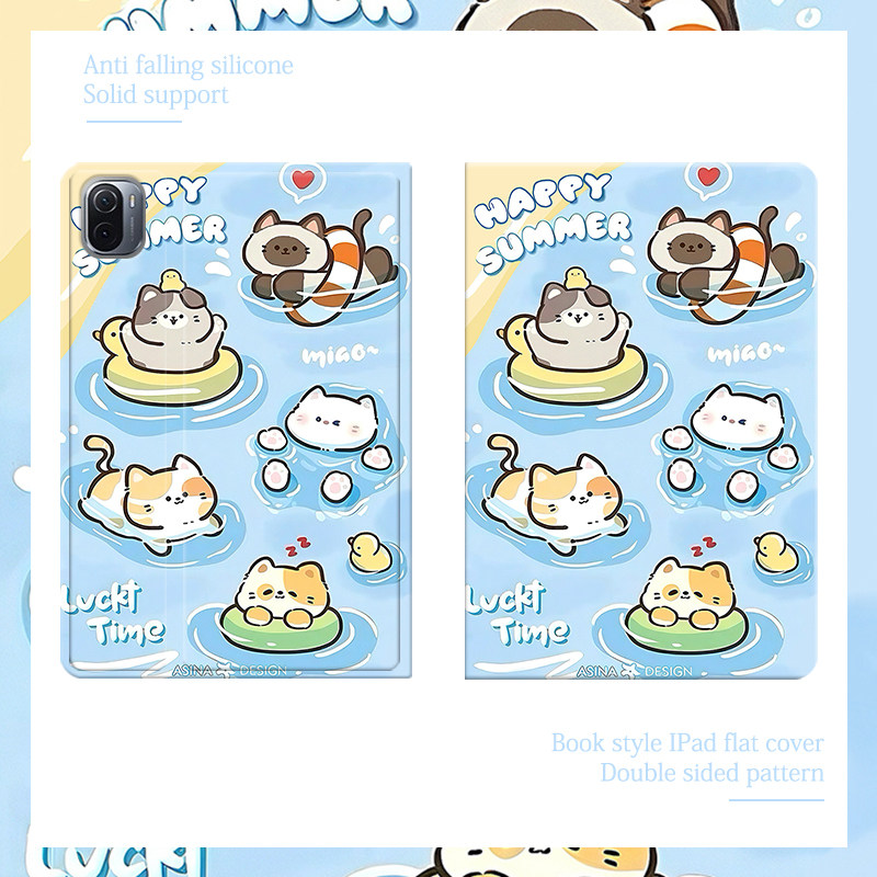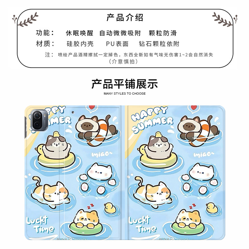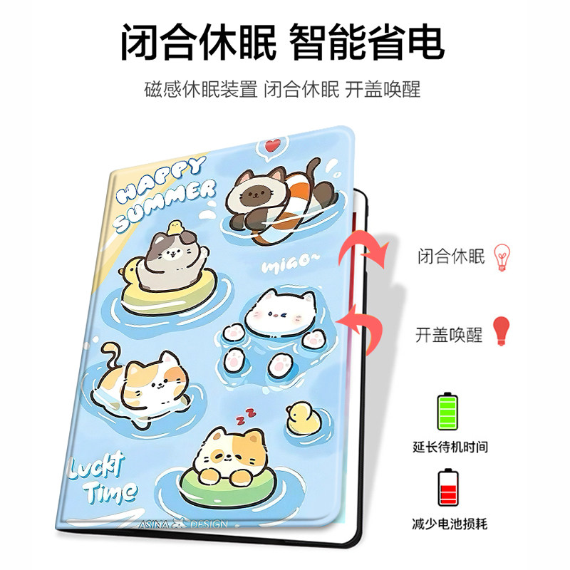可爱游泳小猫适用小米5平板壳oppo保护套vivo带笔槽air联想小新pad10.36三折m10plus气囊padpro硅胶11.5英寸