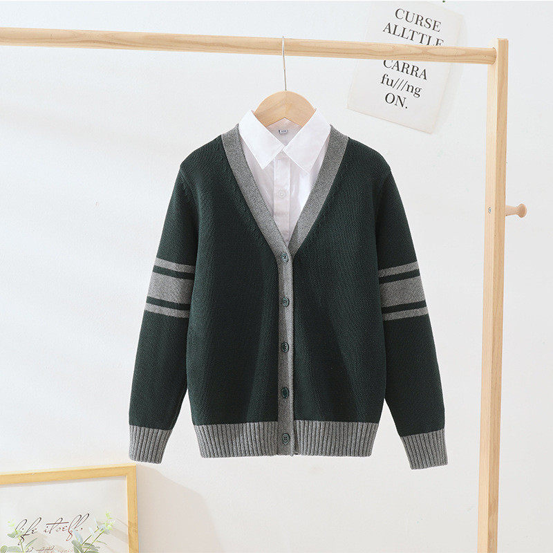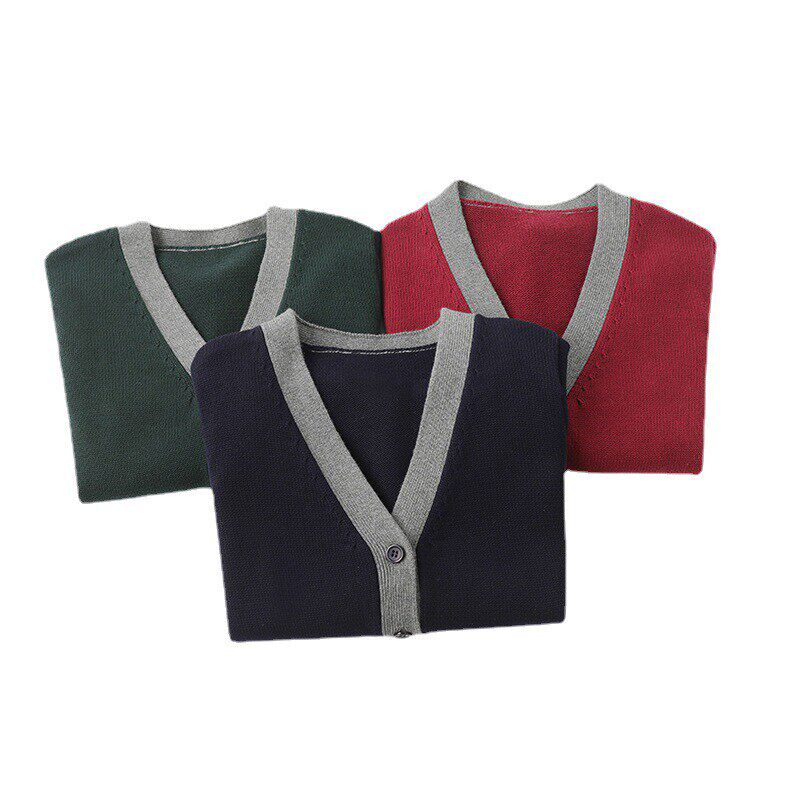毛衣小学生校服外套批发 纯棉拼色针织开衫 春秋新品 儿童针织开衫