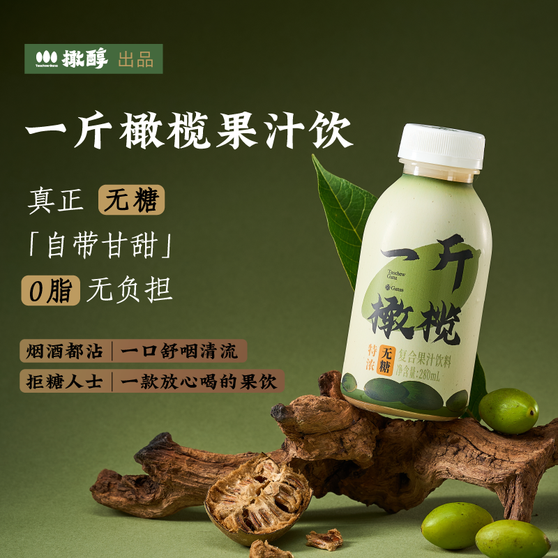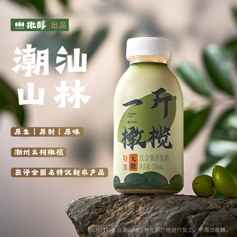 橄醇潮汕一斤橄榄无糖特浓0脂0防腐剂果汁饮料280ml 8瓶礼盒款