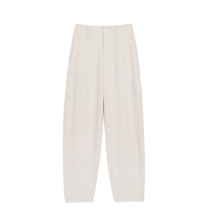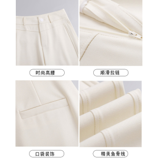 小个子高级拖地香蕉裤 子女春夏高腰垂感弯刀裤 潮 裤 米白色直筒西装