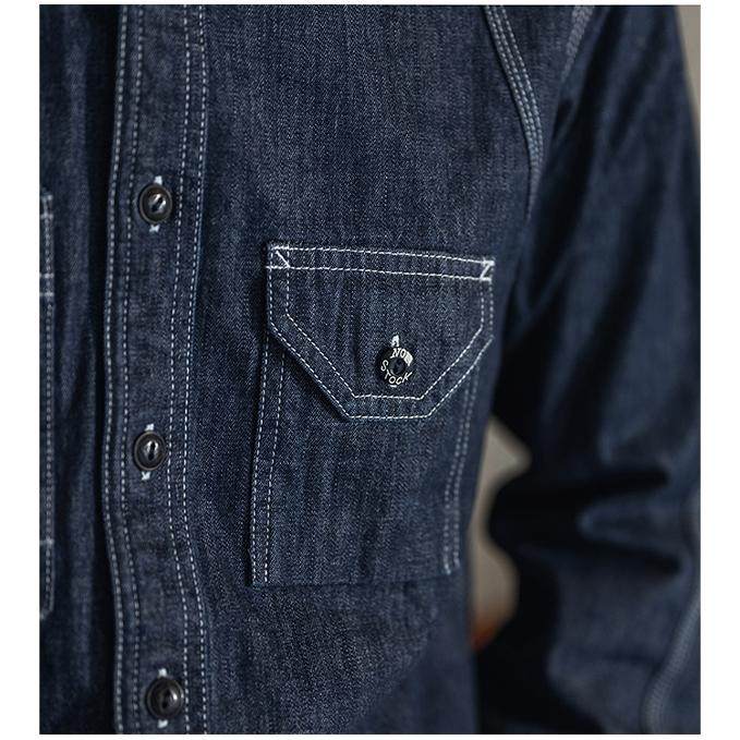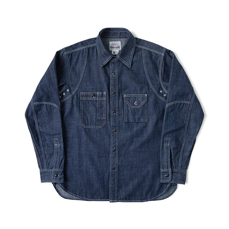 双色水洗磨毛长袖 几立 牛仔衬衫 夕阳倒映在蓝色天际