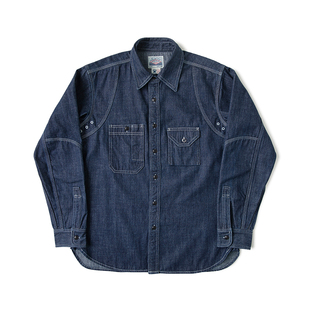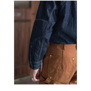 V37日系复古原牛水洗牛仔衬衫 潮牌cityboy宽松休闲衬衣外套 男冬季