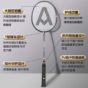 安踏正品 双拍旗舰店女生成人专业耐打全碳素纤维单拍 羽毛球拍套装