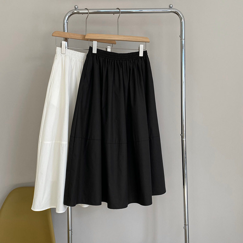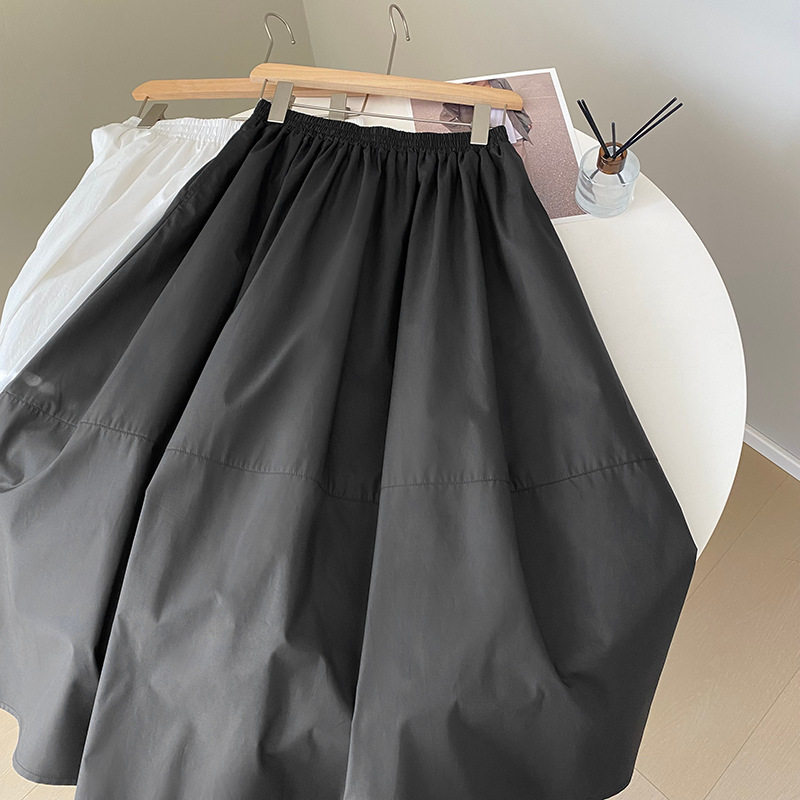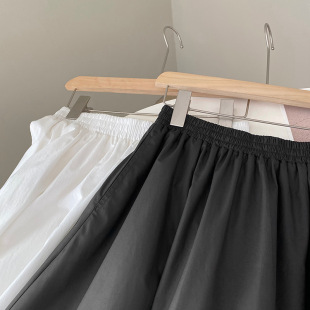 春夏季 显瘦休闲宽松A字显瘦裙 白色松紧腰口袋半身裙女伞裙中长款