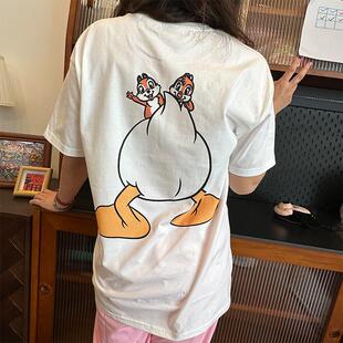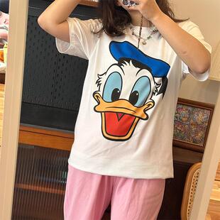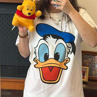 大图系列唐老鸭图案复古百搭印花短袖 t恤夏显瘦百搭宽松纯棉上衣