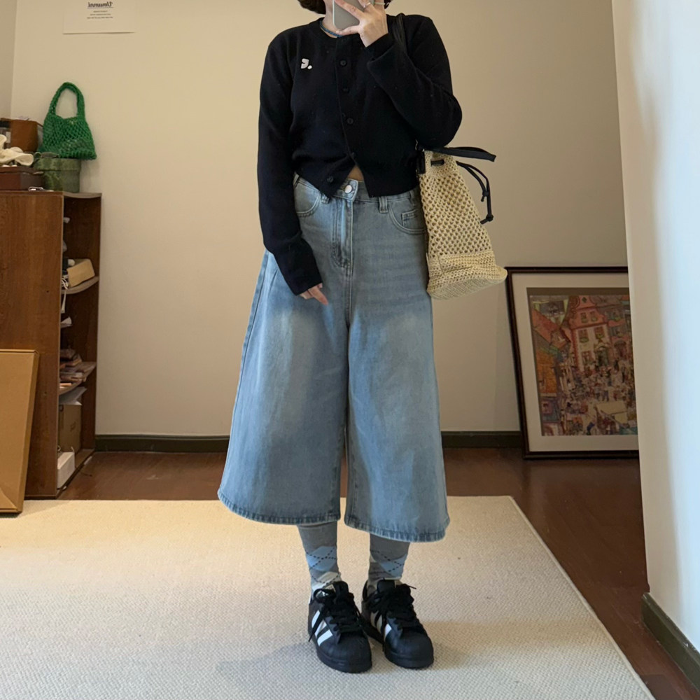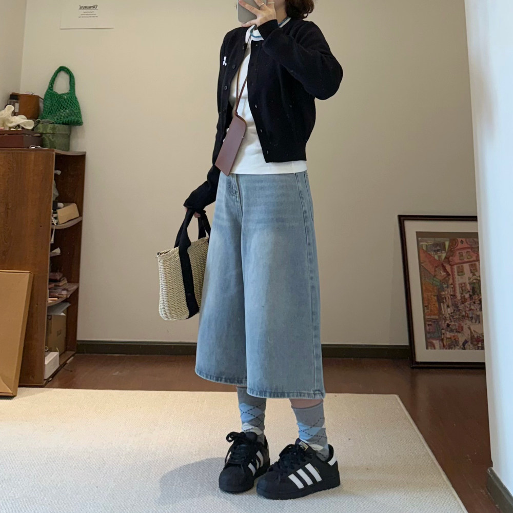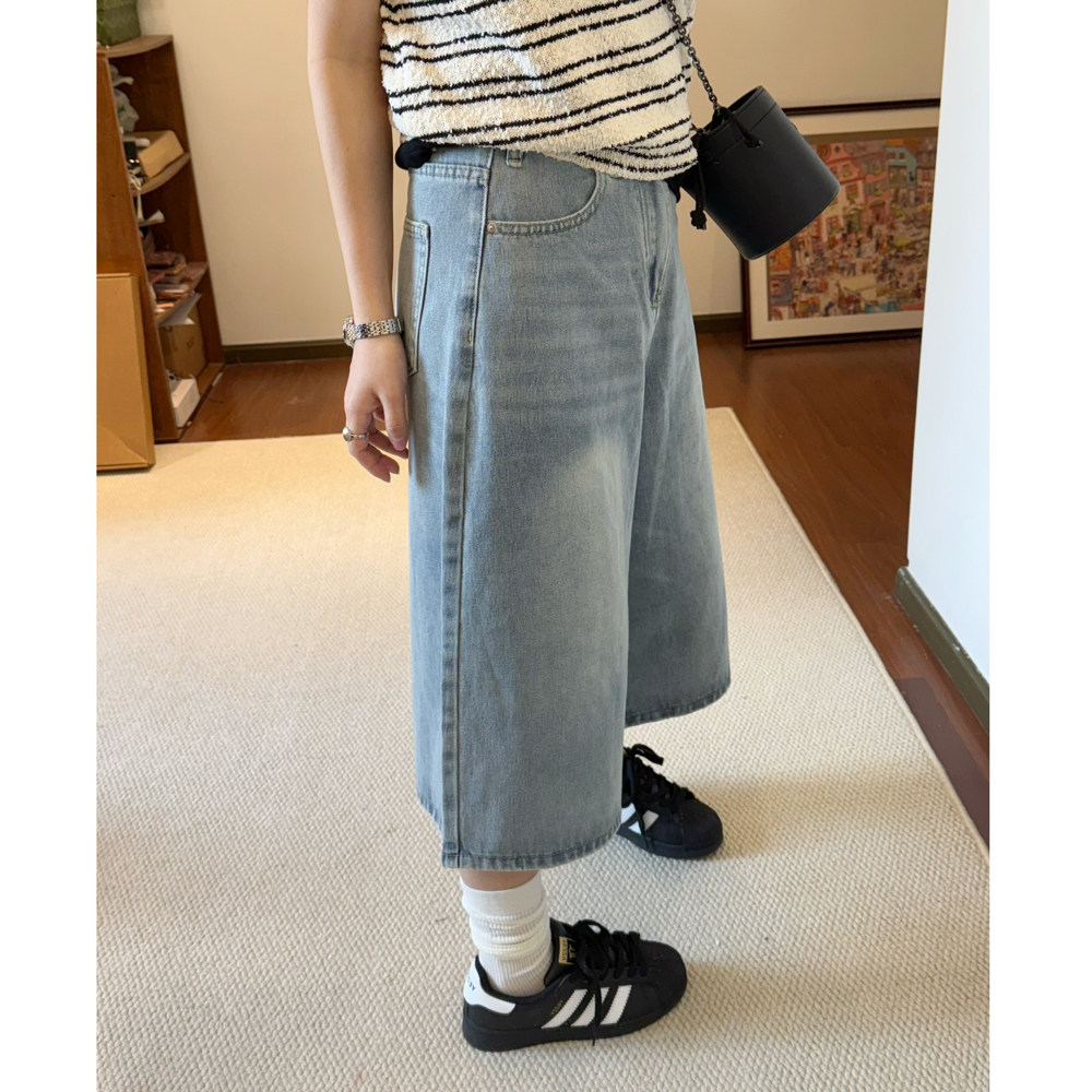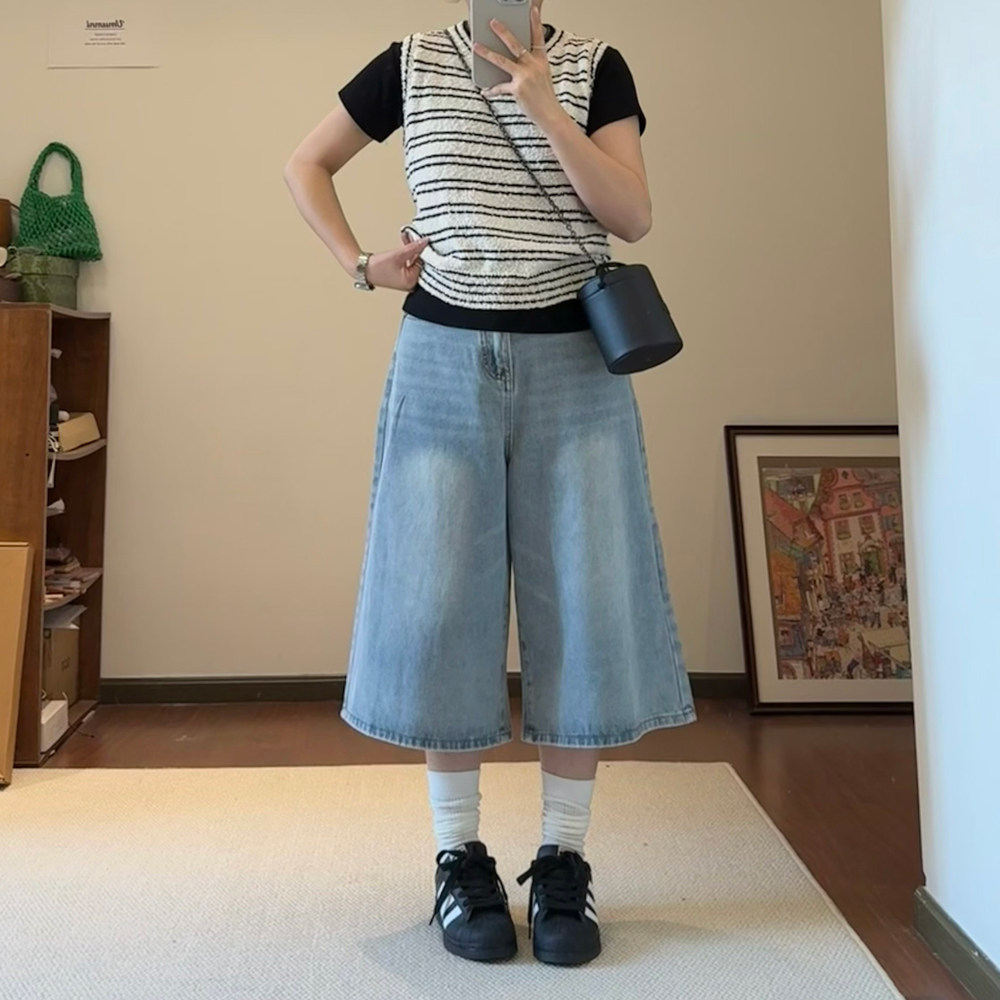 女春夏宽松慵懒高级感显瘦中裤 Omnag桃喜 复古高街阔腿牛仔七分裤