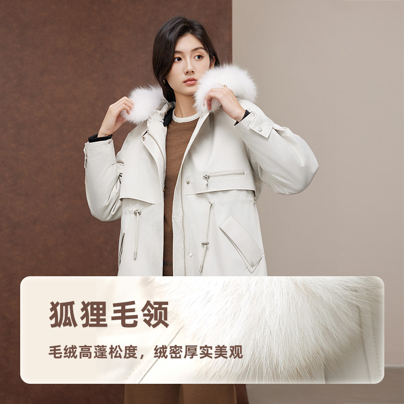 冬加厚工装 毛领羽绒服中长款 骆驼女装 派克服羽绒外套 小红书同款