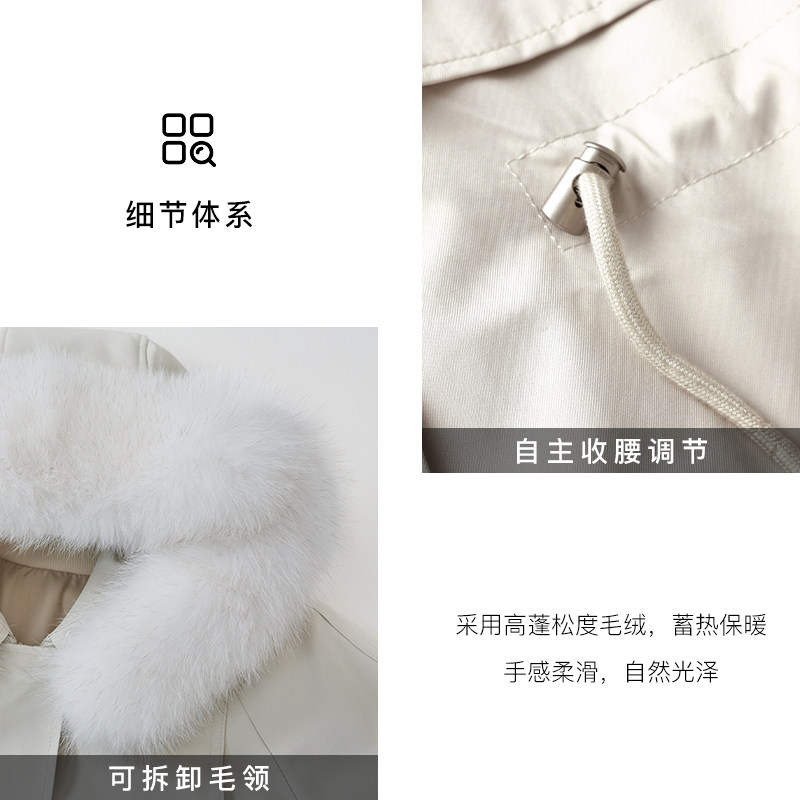 ER小香风毛领连帽羽绒服保暖90白鸭绒派克服外套 明星同款