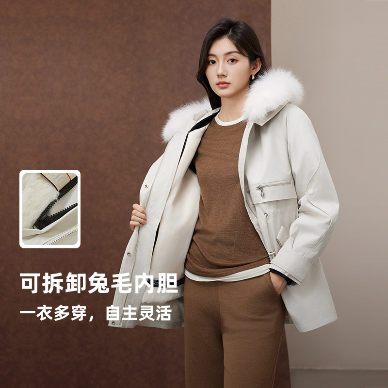 aaaaxbbb 狐狸毛领派克服白鸭绒羽绒服秋冬保暖上衣外套 飞行周末