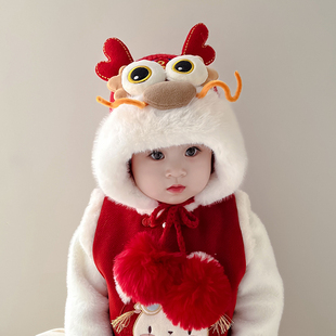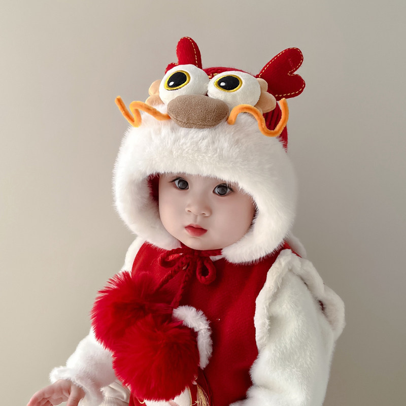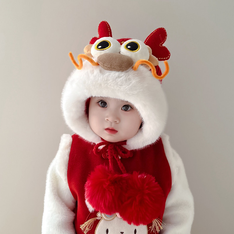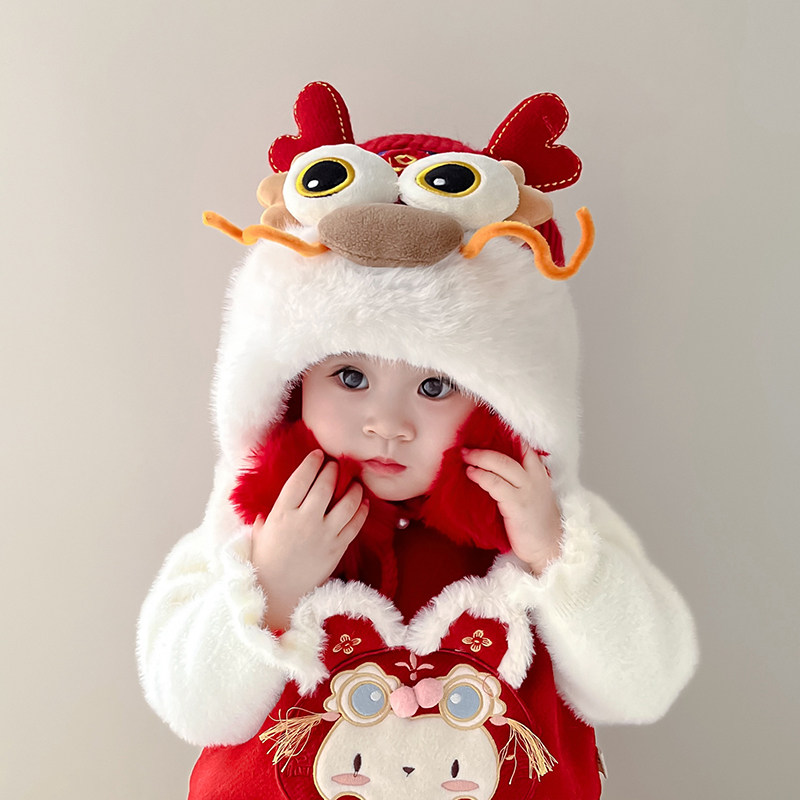 儿童帽子冬季 宝宝过年套头帽男女童红色喜庆护耳帽新年醒狮虎头帽