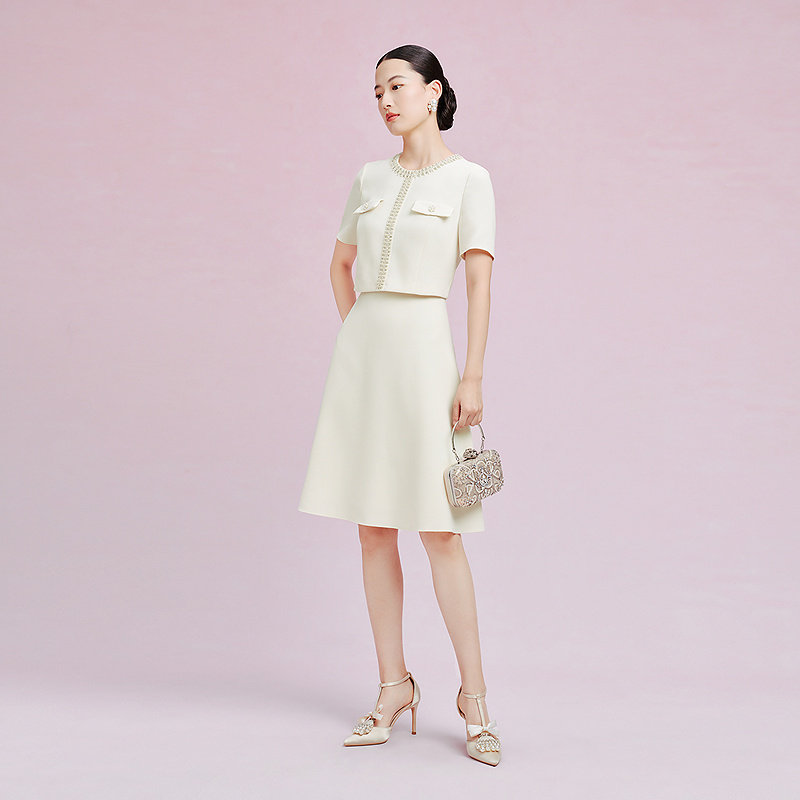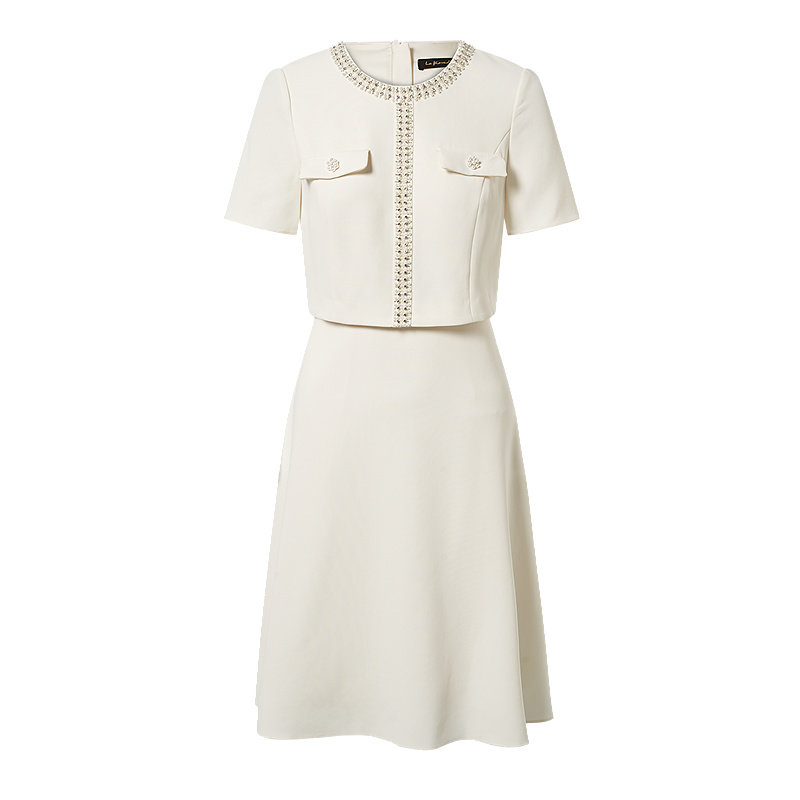 裙 洋装 Koradior拉珂蒂春季 连衣裙 钉珠假两件短袖 法式