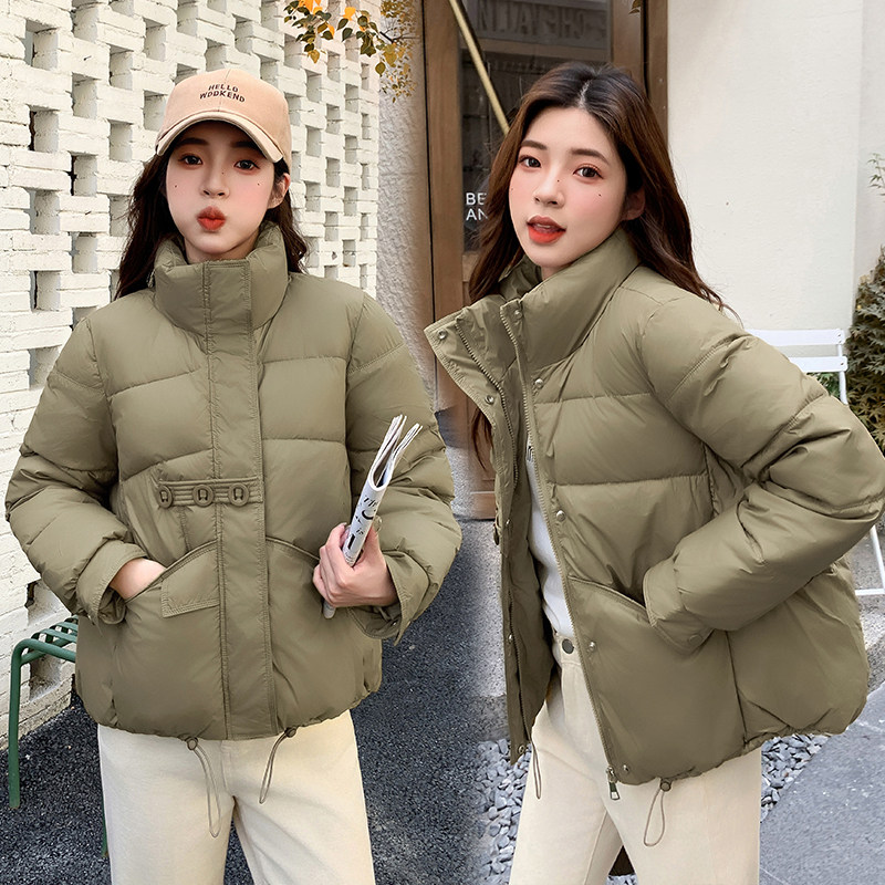 300斤特大码 韩系简约百搭棉服外套女胖mm蓝色加厚保暖面包服上衣