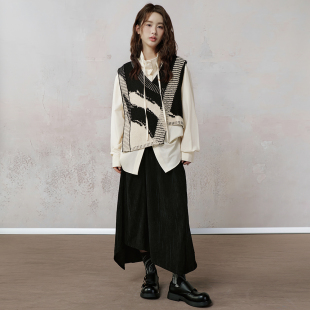 JfYanYan 马甲女独特v领针织背心不规则设计感叠穿坎肩 熔岩沙滩