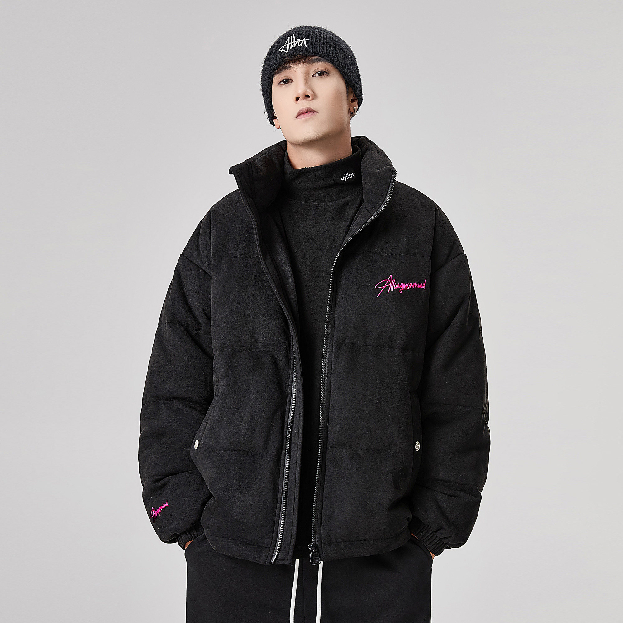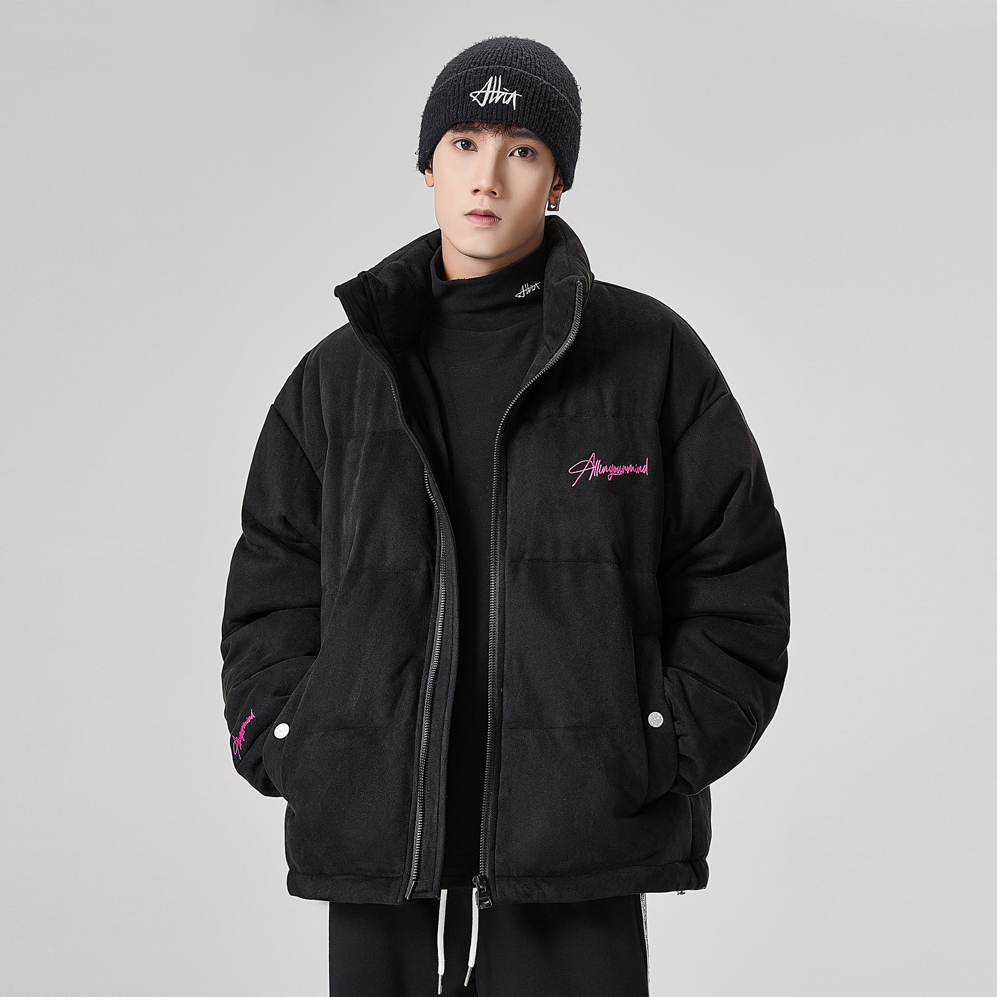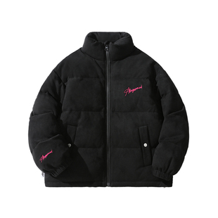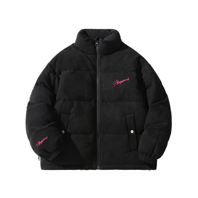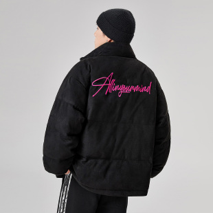 潮牌短款 冬季 字母刺绣加厚保暖情侣外套 黑色立领羽绒服男款 ALLIN