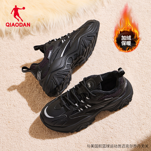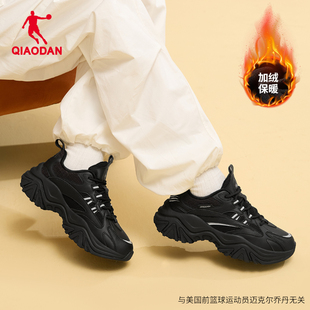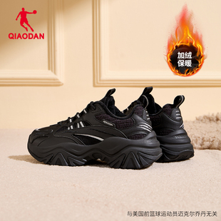 子休闲鞋 硬糖鞋 黑色加绒保暖运动鞋 女2025冬季 V2乔丹皮面防水棉鞋