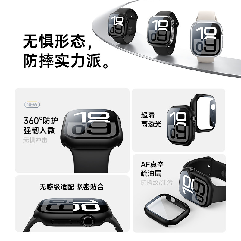适用于苹果S10手表保护壳膜一体applewatch钢化膜iwatch表壳Ultra2保护套防刮防摔超薄全屏46 2025新款 W&P