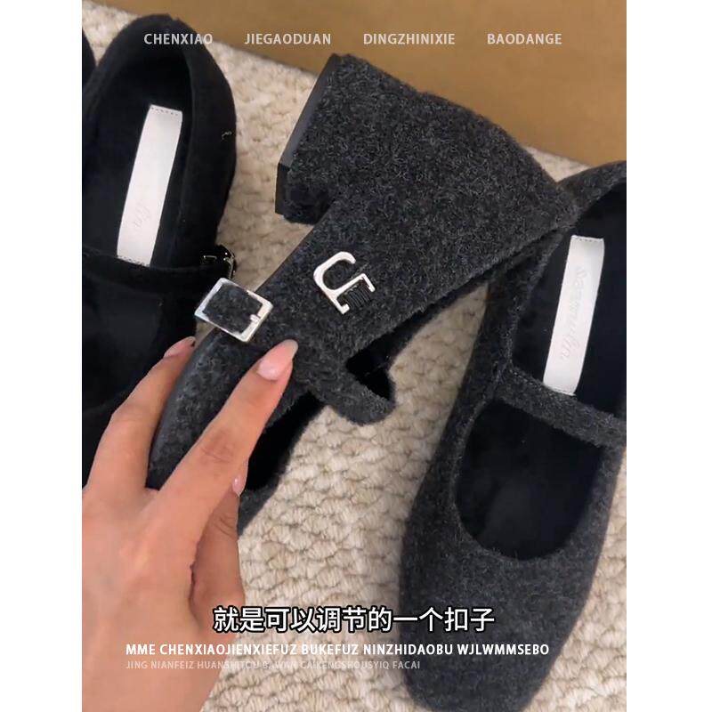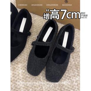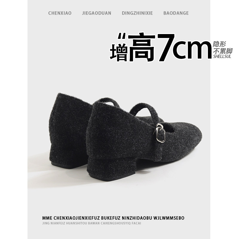 2026春夏粗跟芭蕾舞单鞋 隐形内增高7CM 不累脚粗跟玛丽珍女鞋