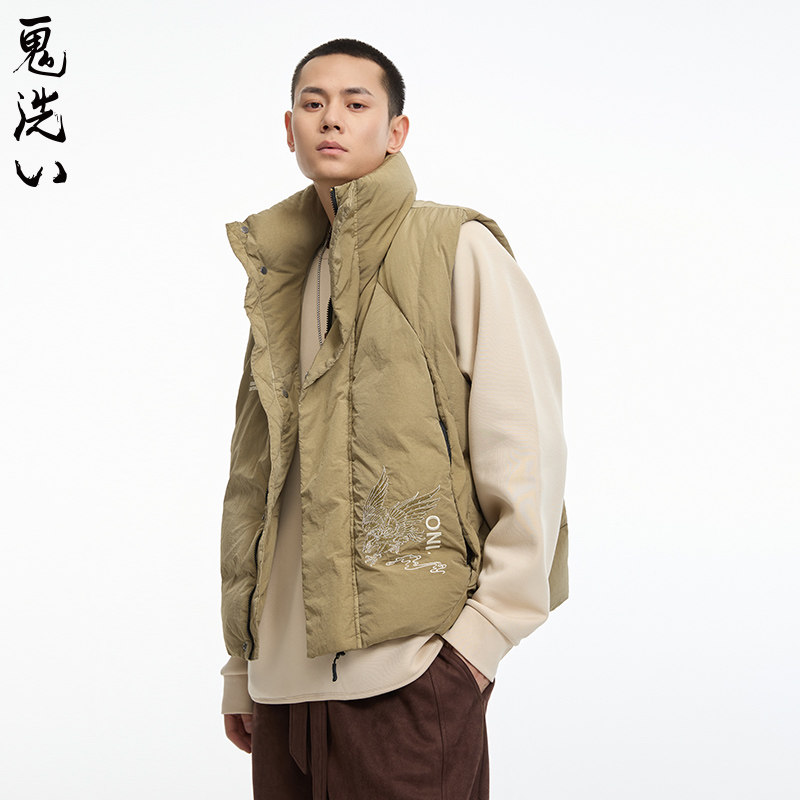 B340194 休闲线条设计刺绣羽绒马甲男式 ONIARAI 鬼洗24秋冬新品