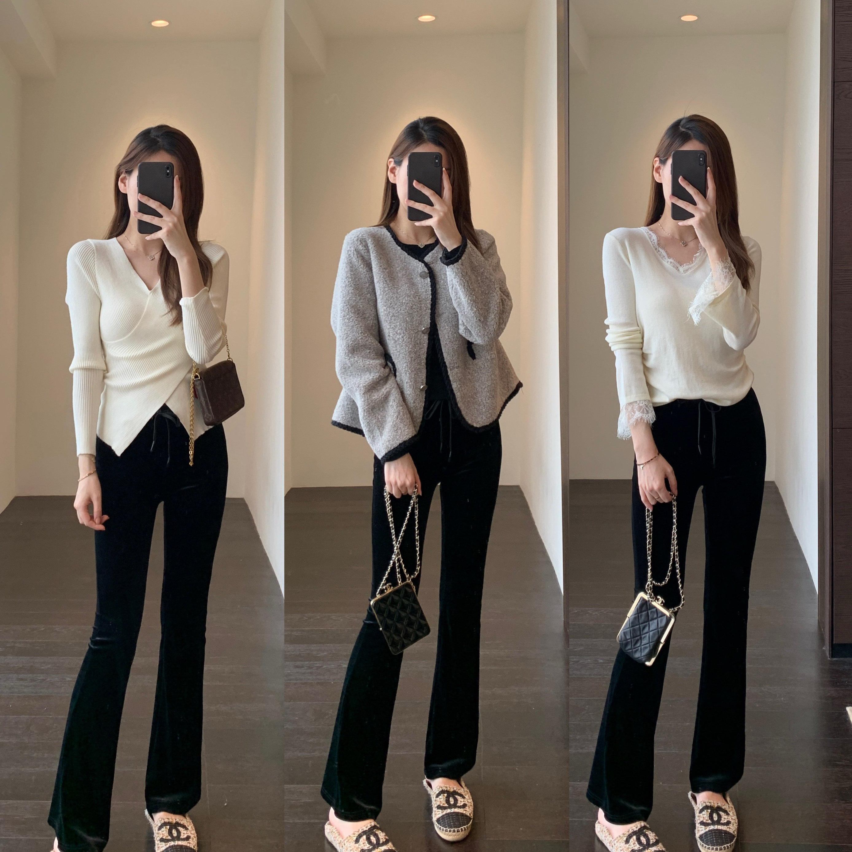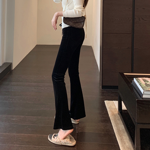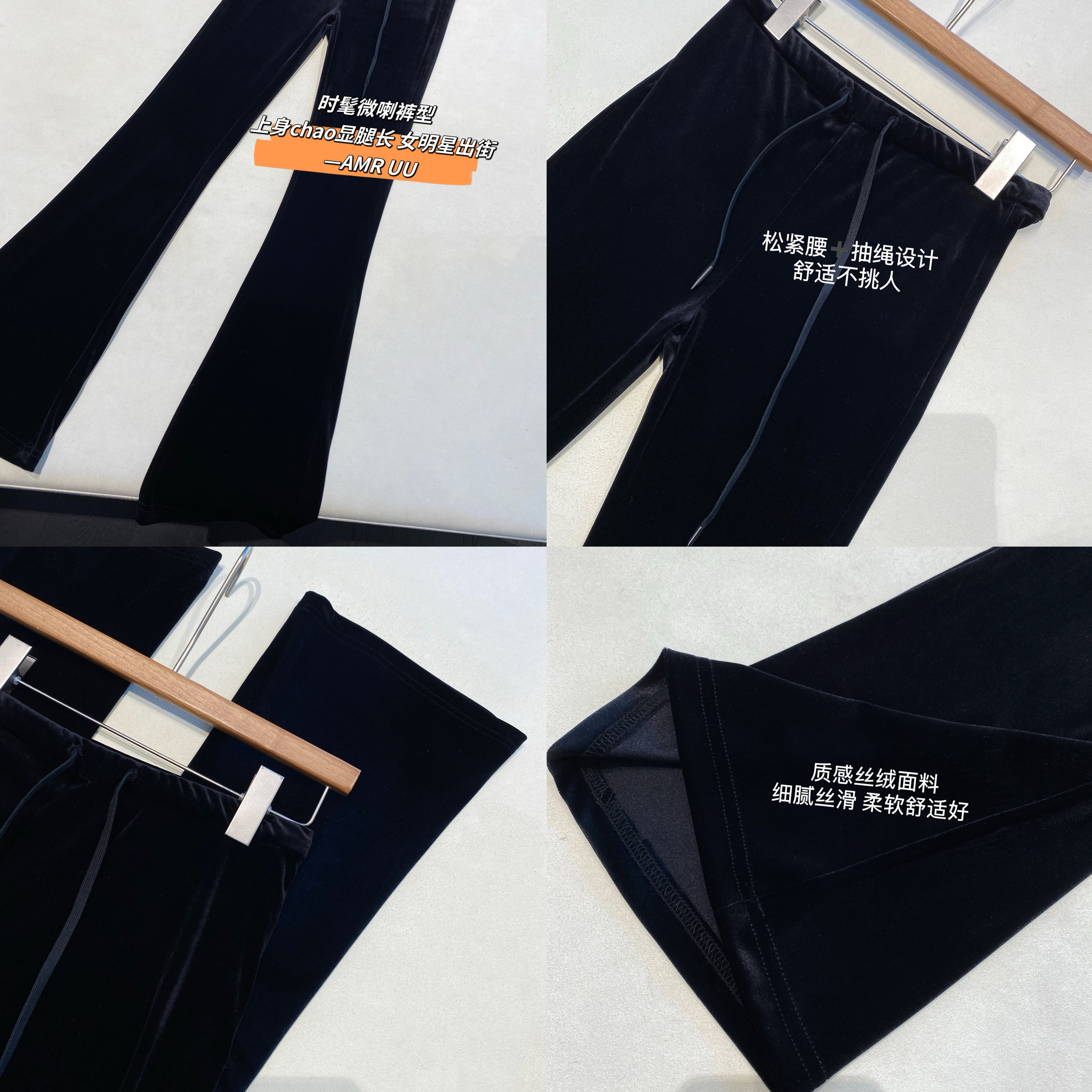 秋冬新款 超模大长腿 女阔腿裤 高品质丝绒显瘦高腰微喇裤 AMR