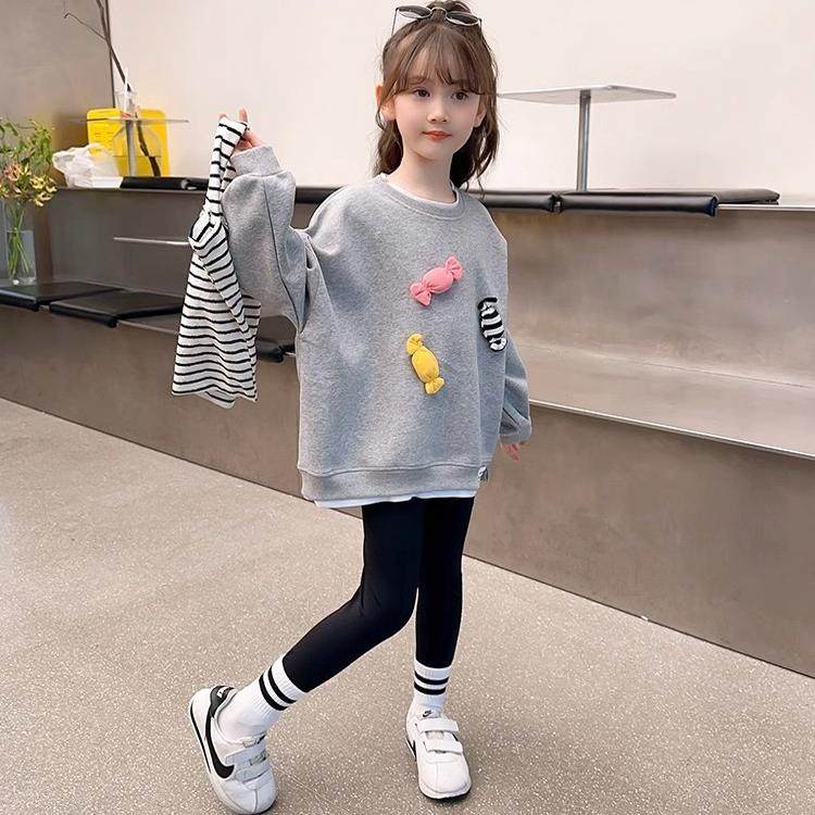 宽松百搭打底衫 女童卫衣韩版 长袖 儿童秋冬装 假两件中大童2024新款