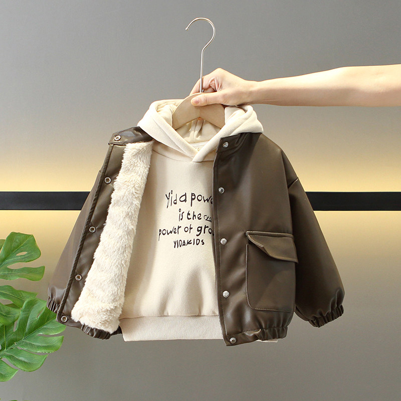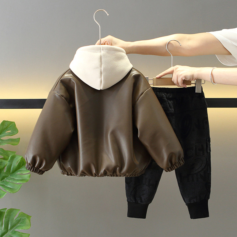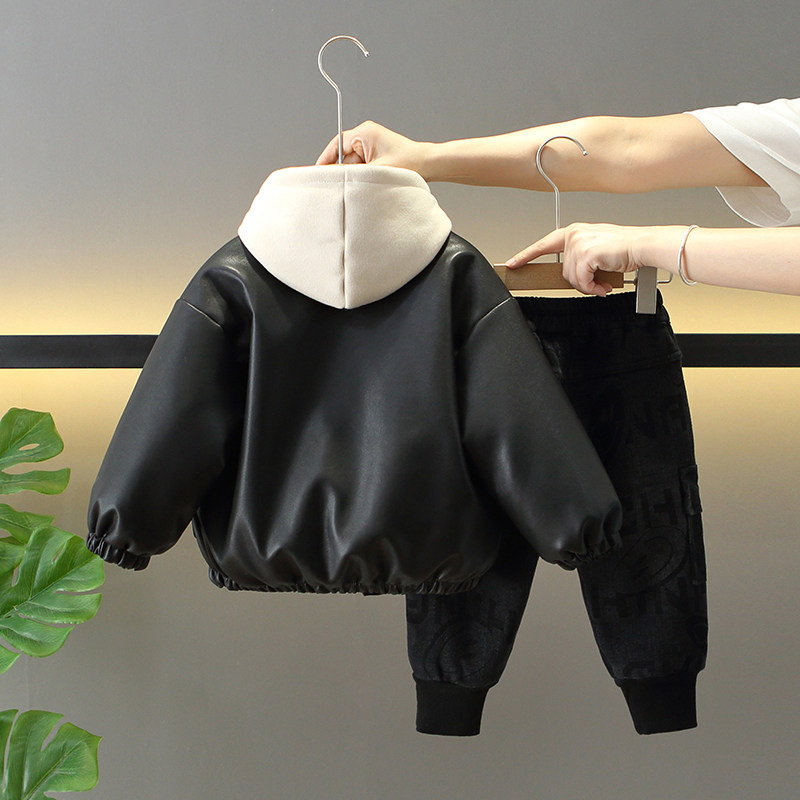 三件套宝宝加绒加厚冬装 酷帅儿童时髦韩版 衣服潮 皮衣套装 男童冬季