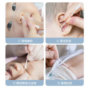 婴儿棉签宝宝专用新生幼儿童掏耳鼻屎挖耳勺超细双头清洁小棉花棒