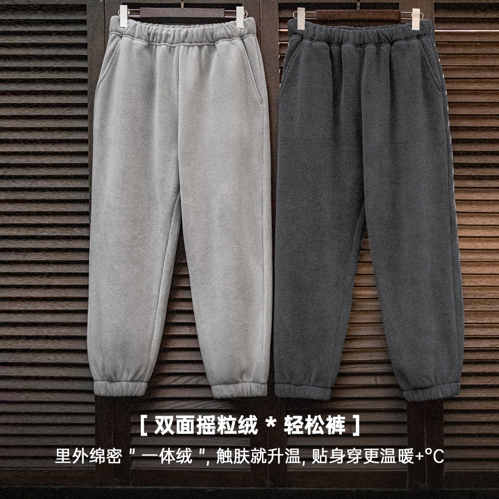 加绒保暖运动休闲直筒长裤 双面摇粒绒束脚卫裤 男秋冬 美式 马登工装