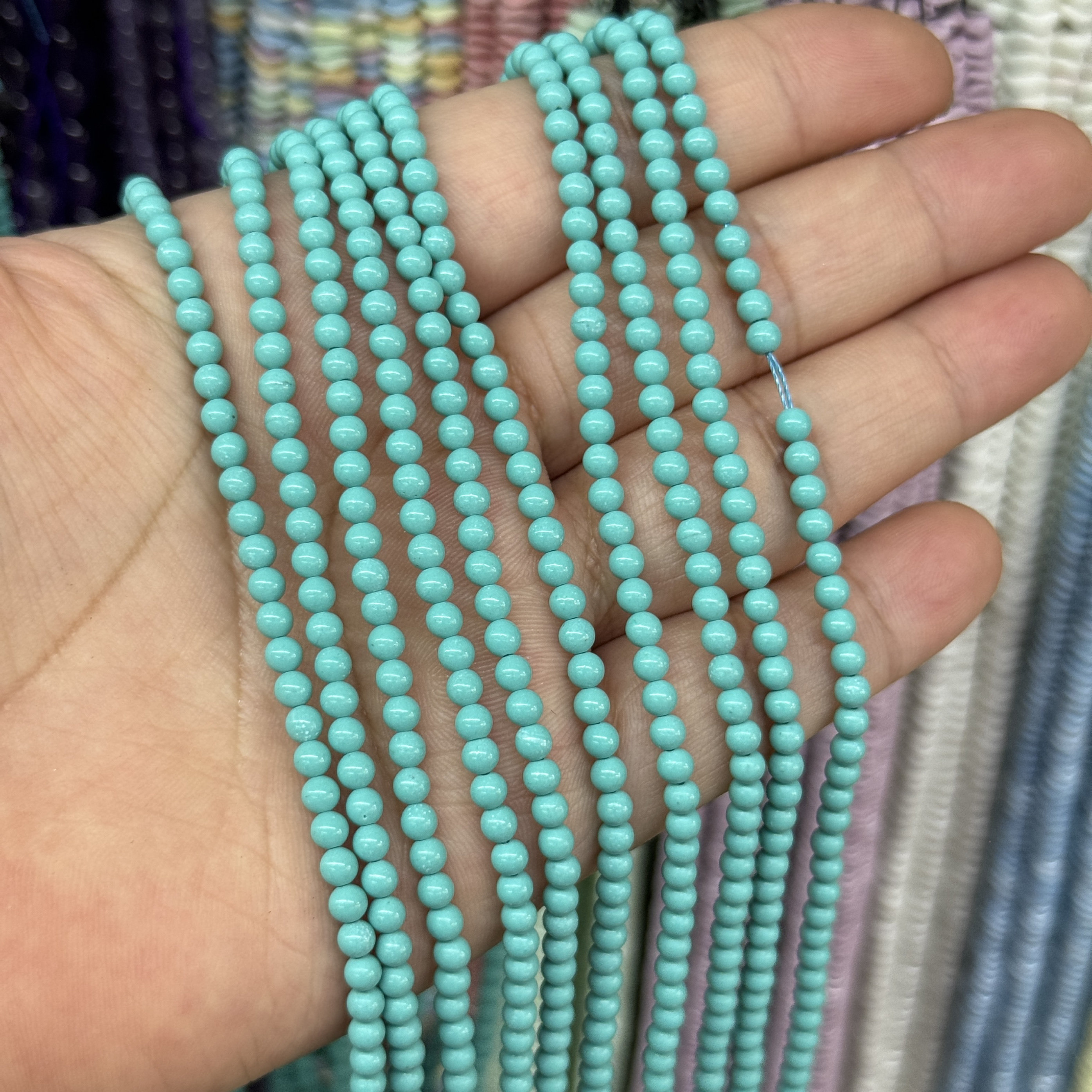 天然石优化加色蓝松石圆珠散珠半成品DIY项链手链配珠串珠配珠