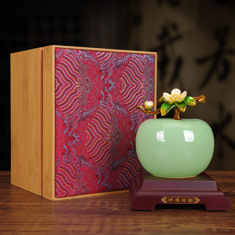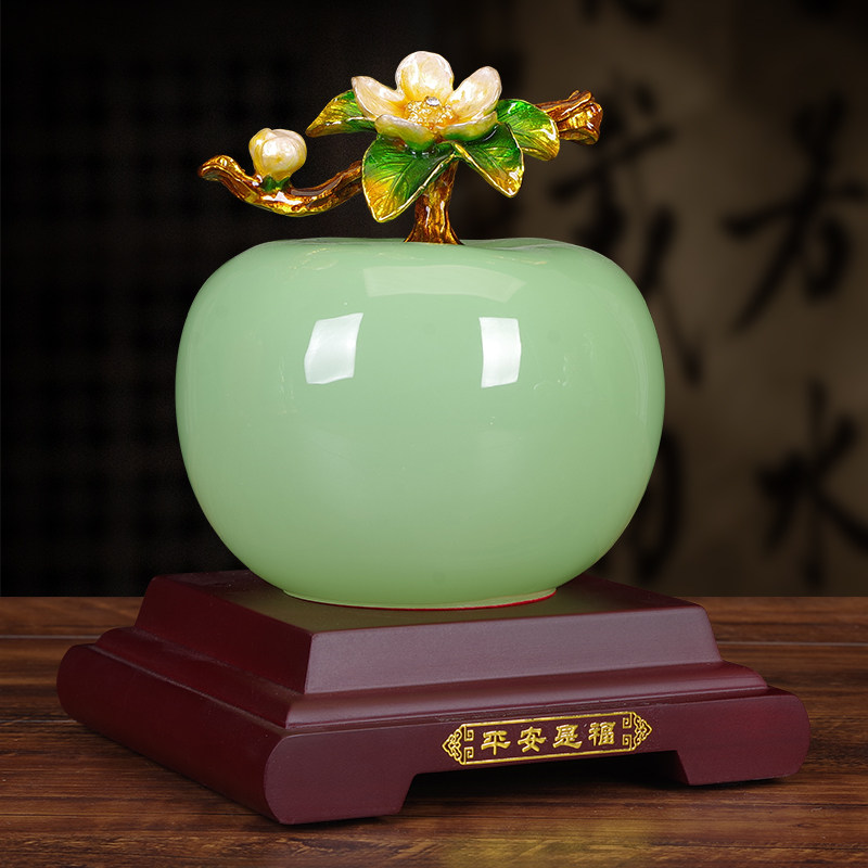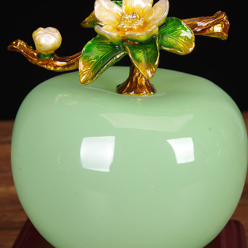 琉璃青玉苹果摆件事事如意柿子招财客厅酒柜装 饰品搬新家乔迁礼物