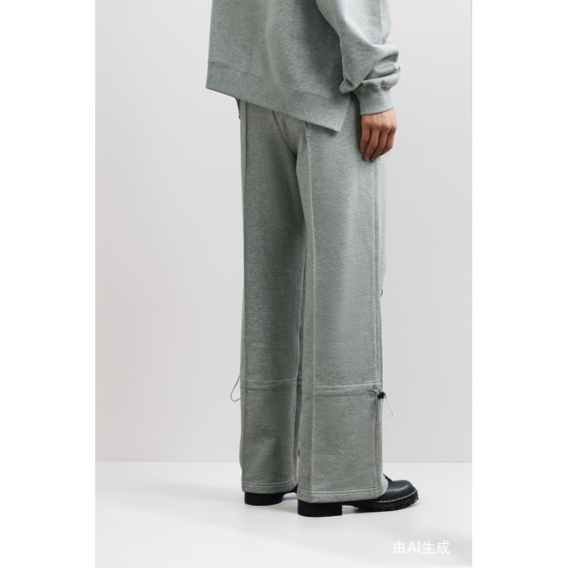 胖妹妹显瘦垂感休闲裤 格雷系黑灰撞色阔腿慵懒风格 大码 女秋季 子裤