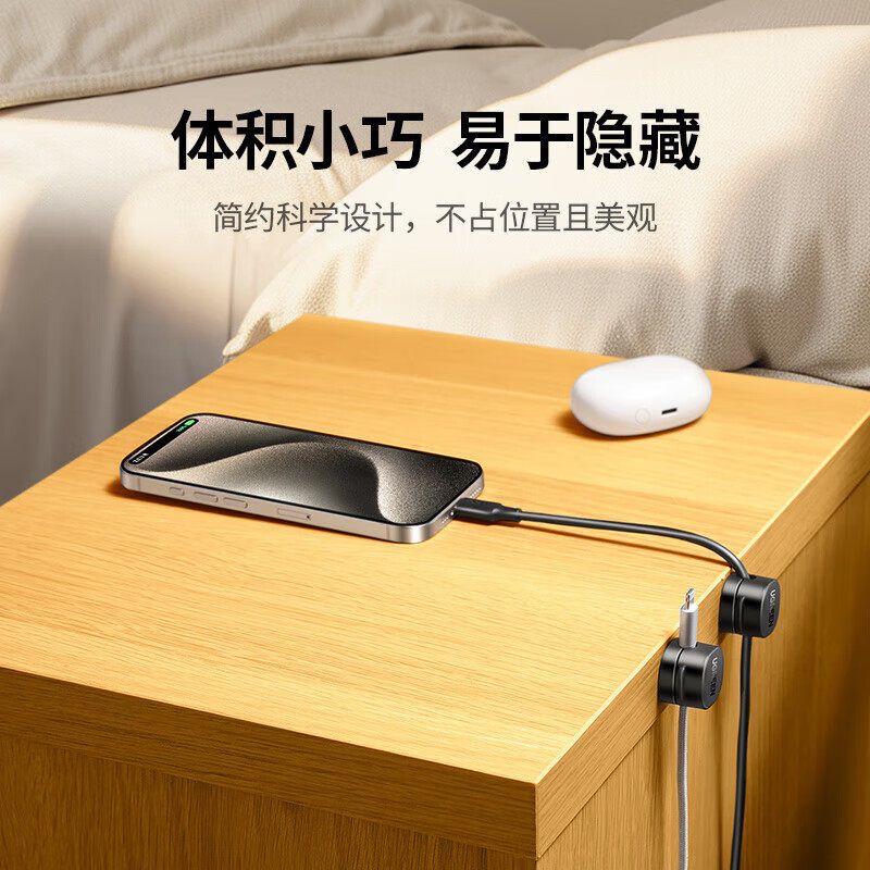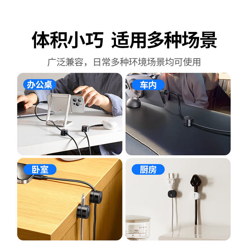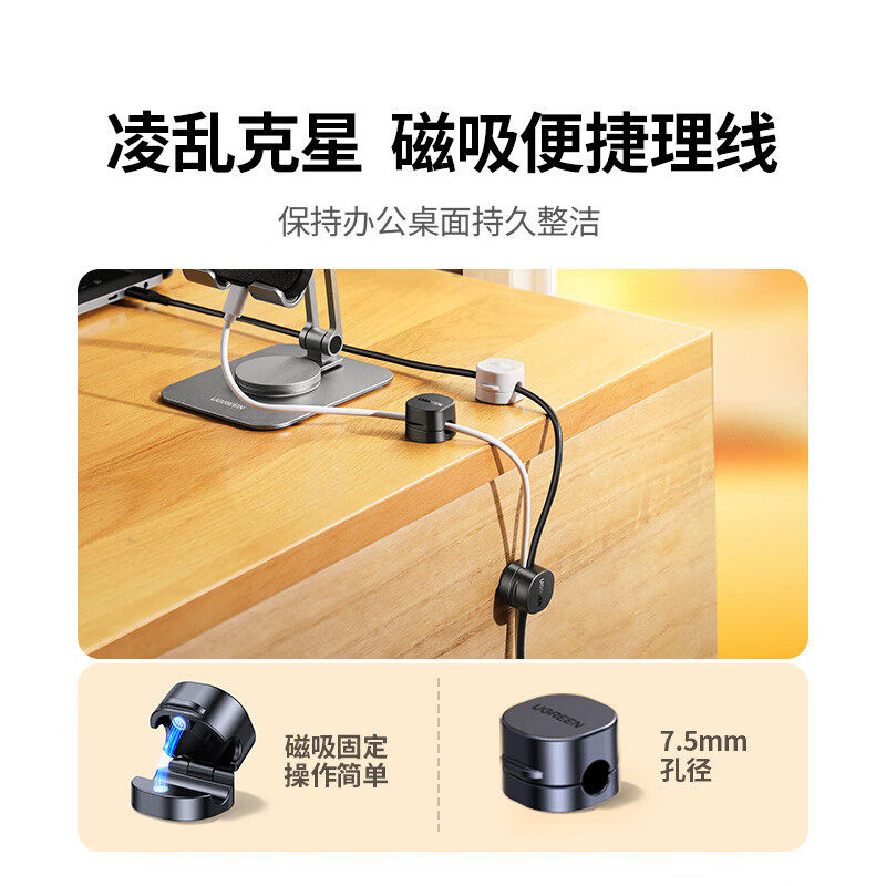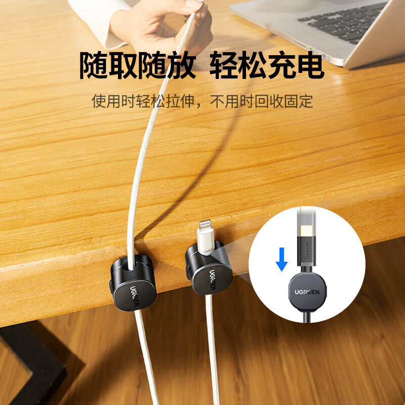 绿联磁吸理线器桌面粘贴式 线缆收纳神器手机充电线夹固定器三个装