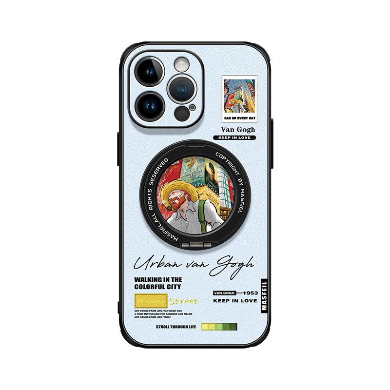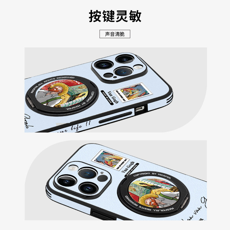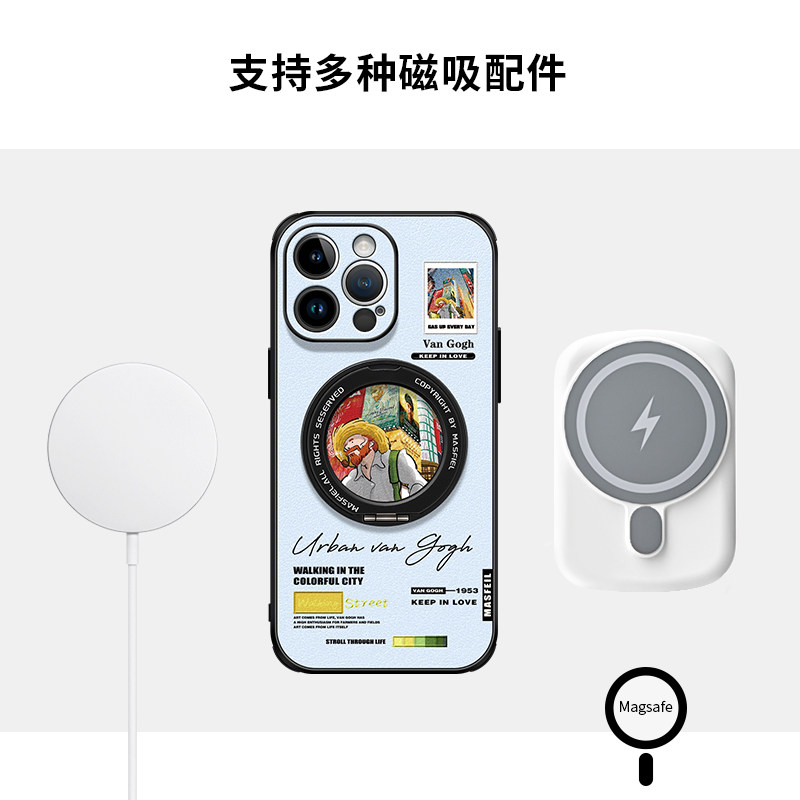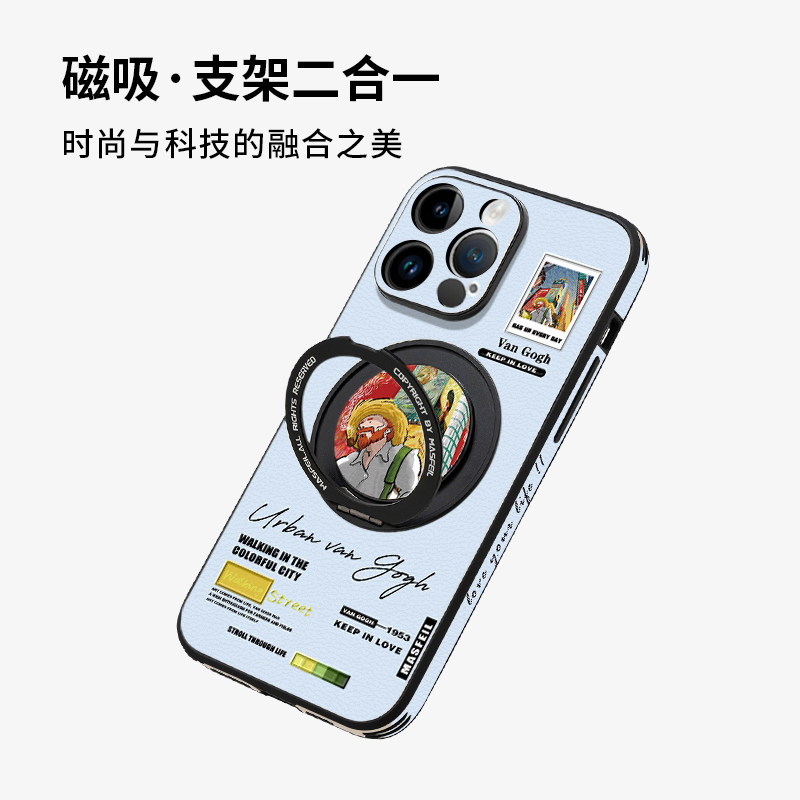 ip15磁吸带支架苹果16Pro保护套支点14高级感13pm全包Ho5 都市梵高适用iPhone17Promax手机壳新款 MASFEIL
