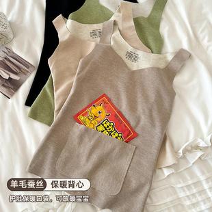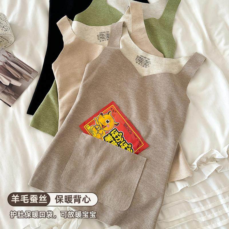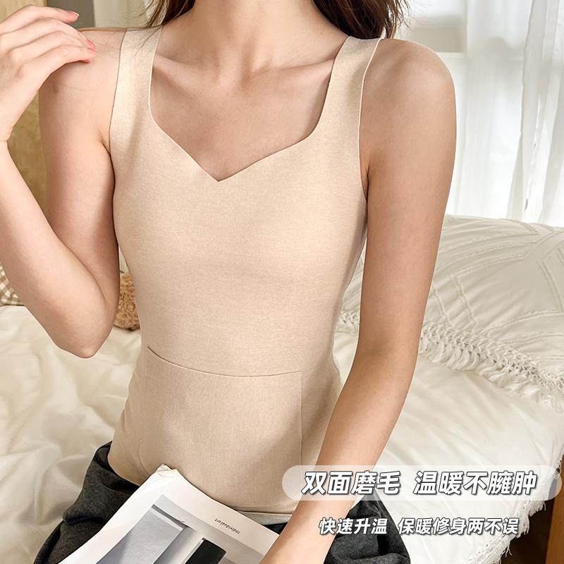 秋冬款 针织内搭上衣灰色 v领无痕保暖羊毛发热马甲背心女士无袖