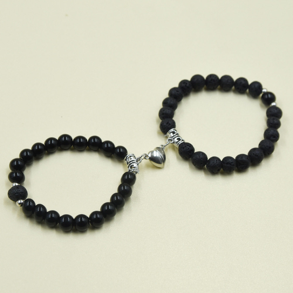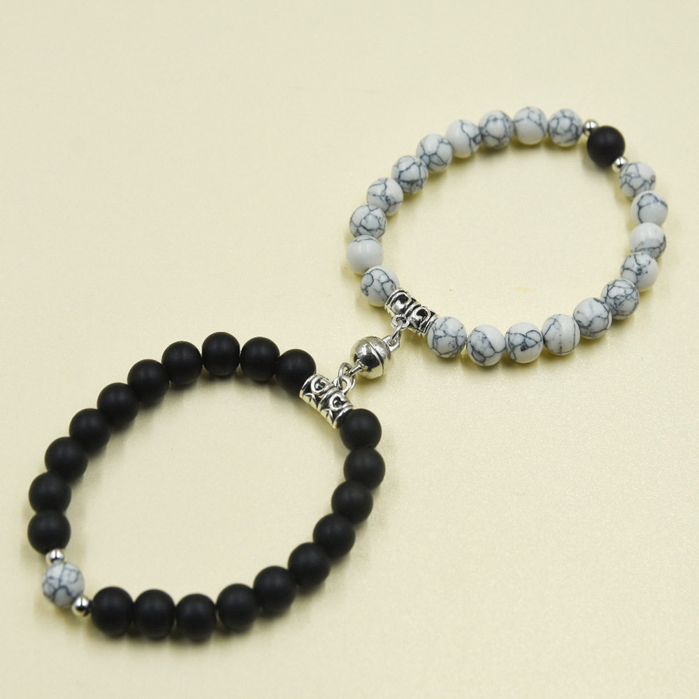 秋冬磨砂白松石情侣手链简约心形磁铁相吸手饰混色2022新款