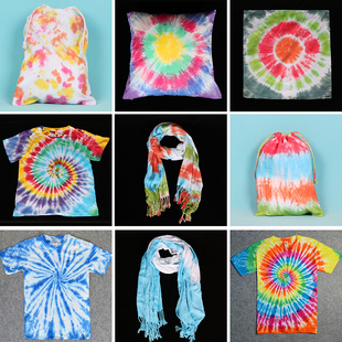 手工扎染靛青蓝diy材料包儿童颜料印染工具套装 方巾蜡染纯棉面料