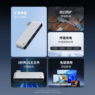 Snowkids拓展坞usb扩展器直插USB转4USB3.0转换器Typec高清视频hdmi适用笔记本电脑苹果USB多接口扩展分线器