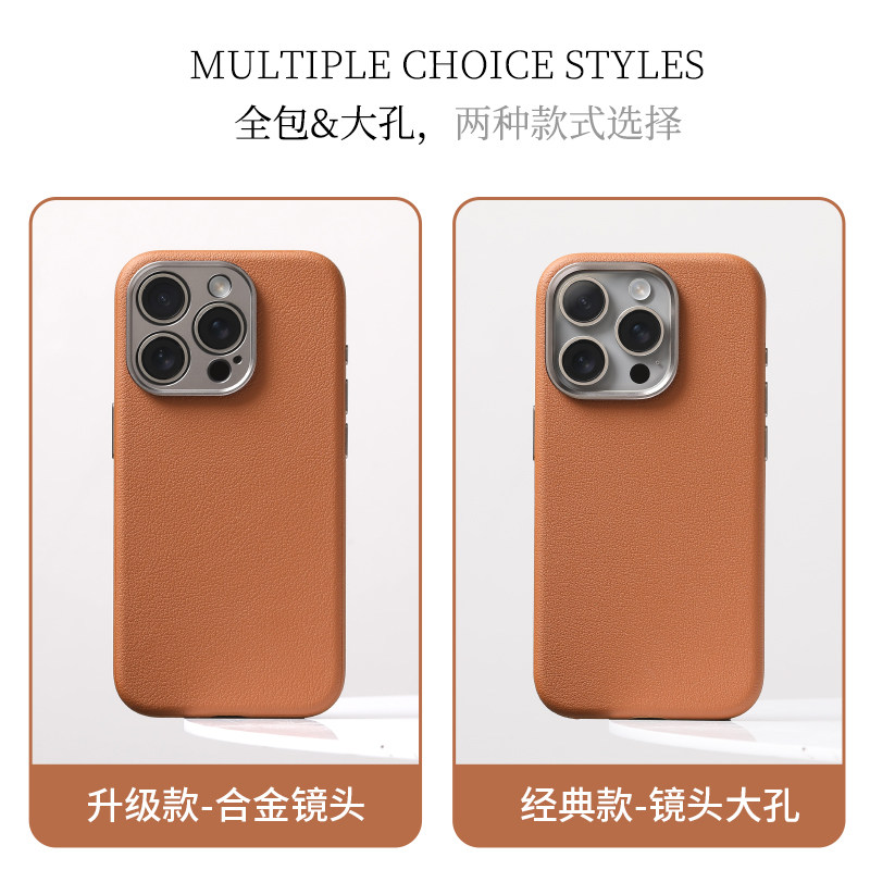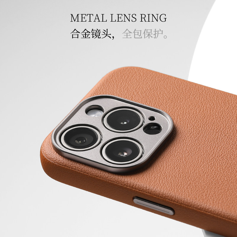 Balueus适用苹果16ProMax手机壳iPhone15Pro新款 真皮保护套Magsafe磁吸por金属镜头ip全包防摔16高级感男15女