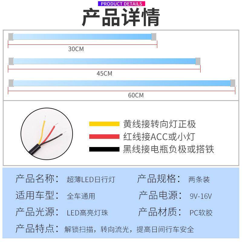 启动扫描款 LED流光转向灯冰蓝炫彩 汽车日行灯流水灯超薄隐形改装