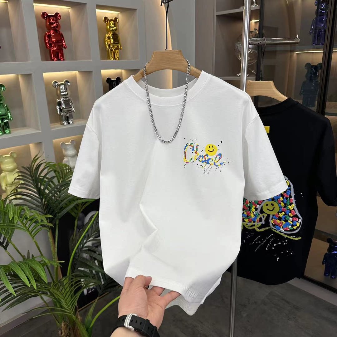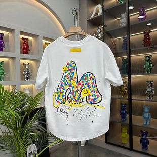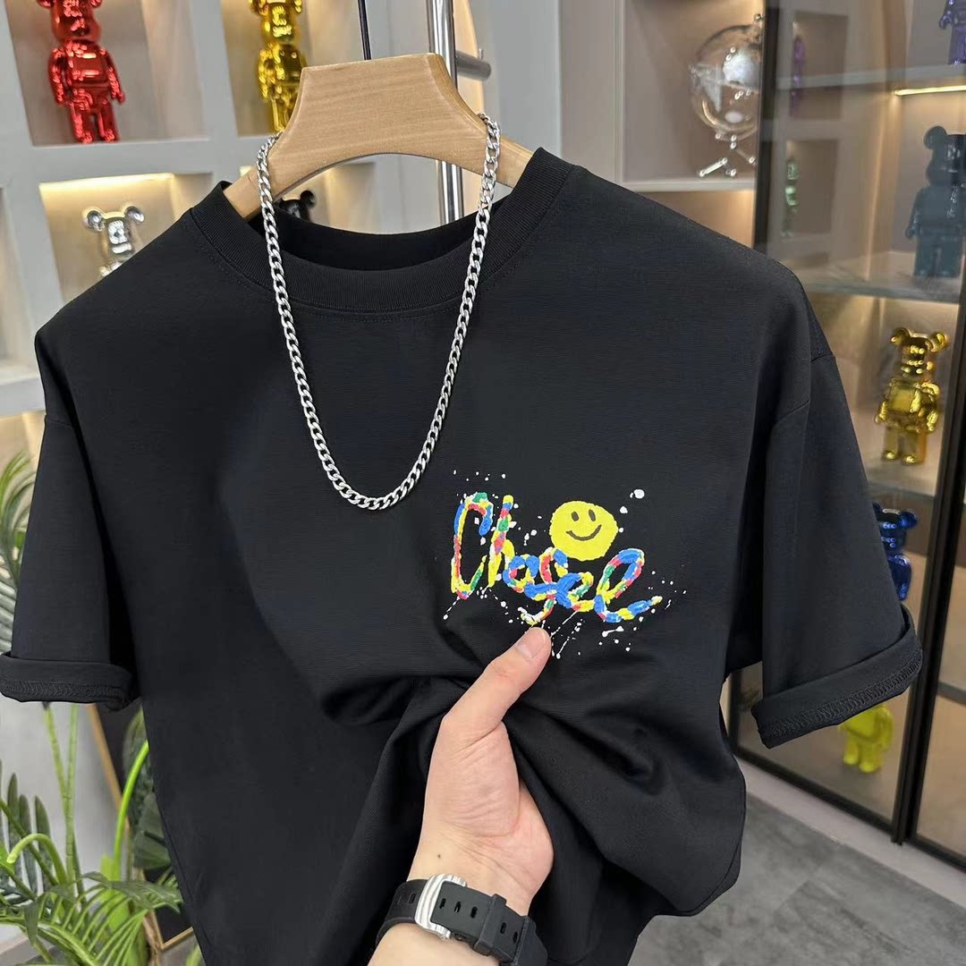 百搭休闲燕尾男短袖 时尚 T百搭上衣 2025夏季 潮流字母卡通印花半袖