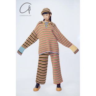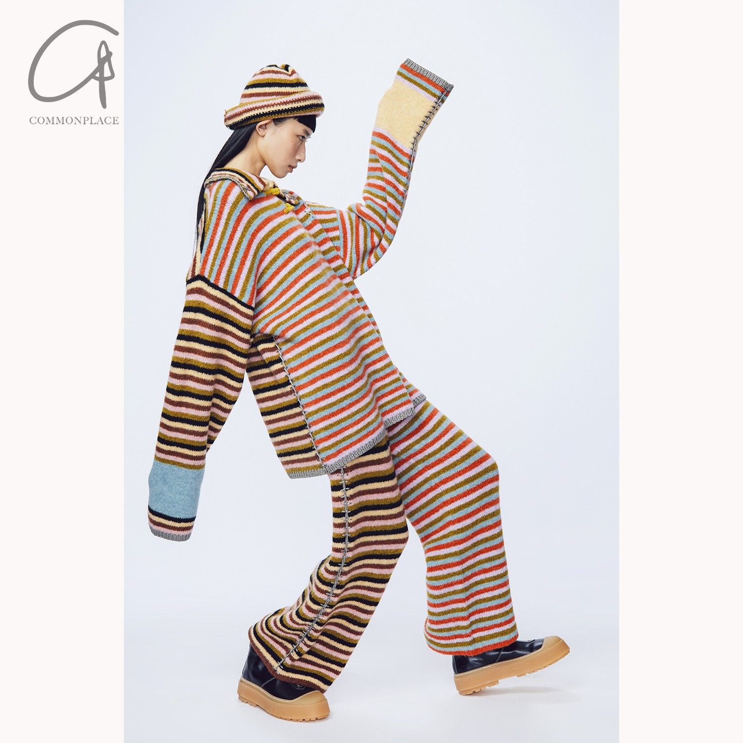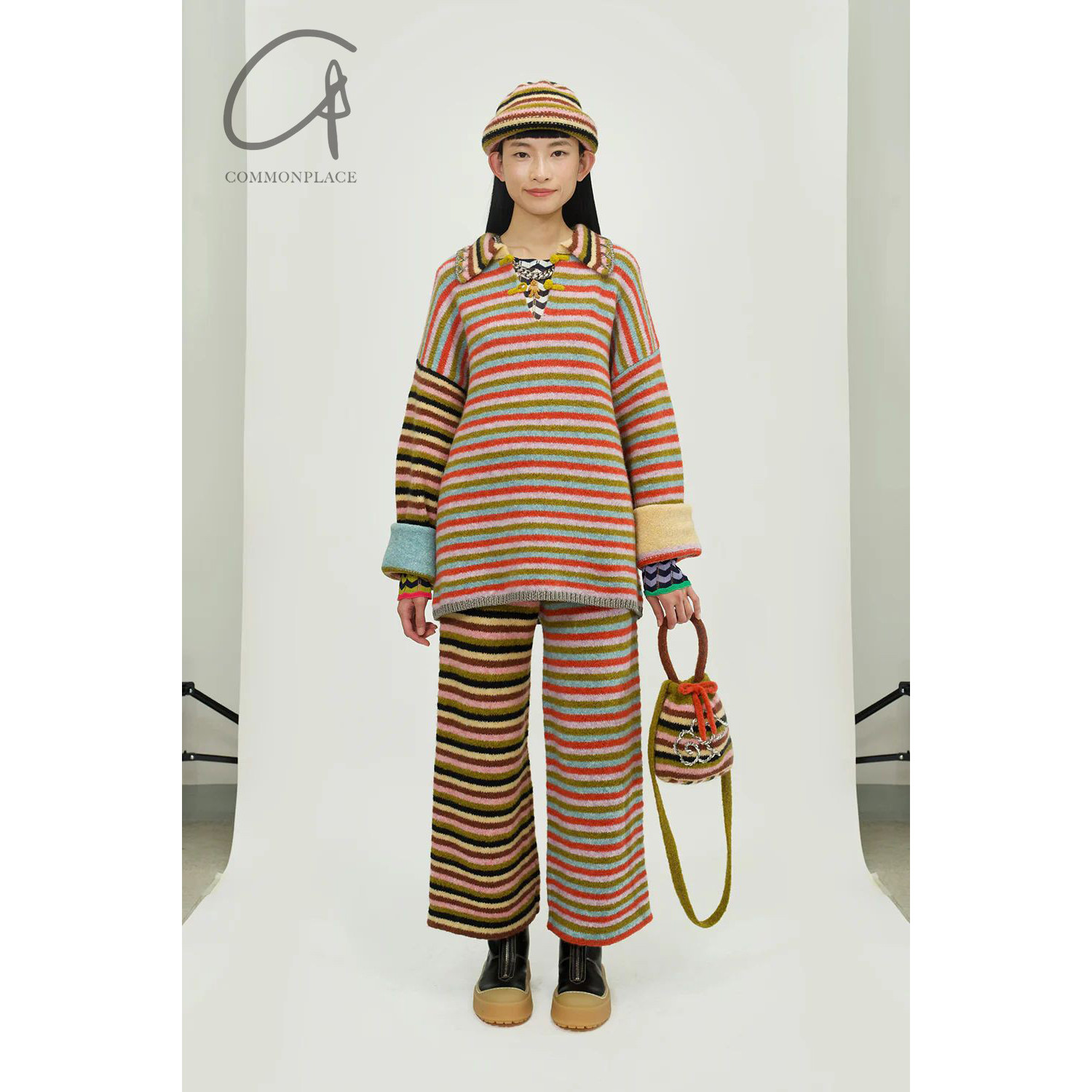 柔软拼色条纹休闲裤 YANYAN KNITS