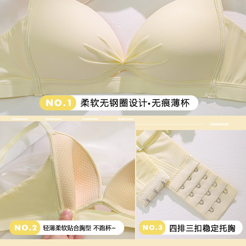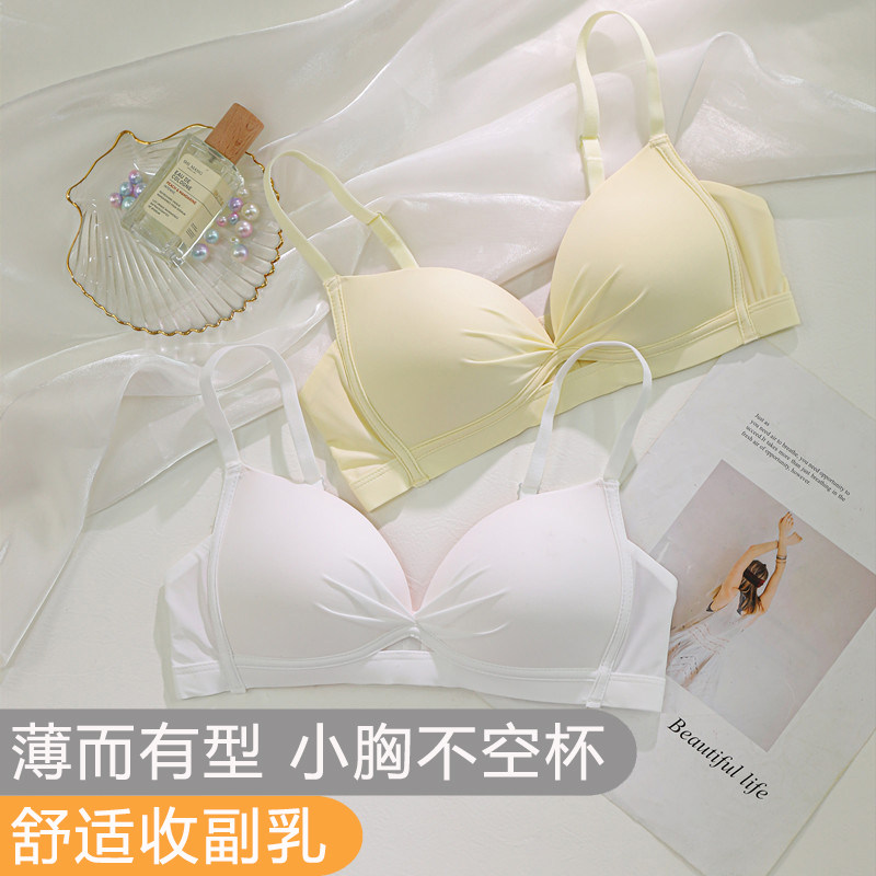 夏季 内衣女显小胸聚拢收副乳防下垂三角杯细肩带美背文胸罩 天薄款
