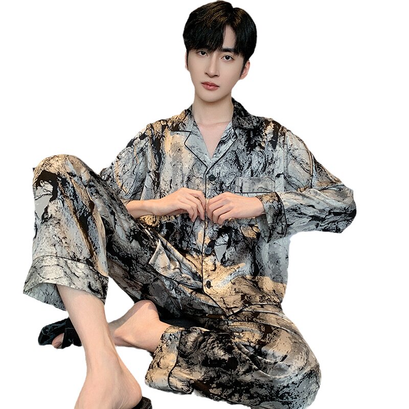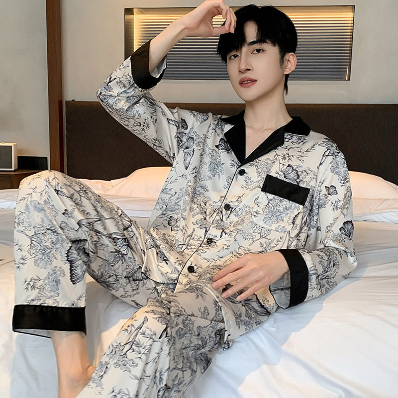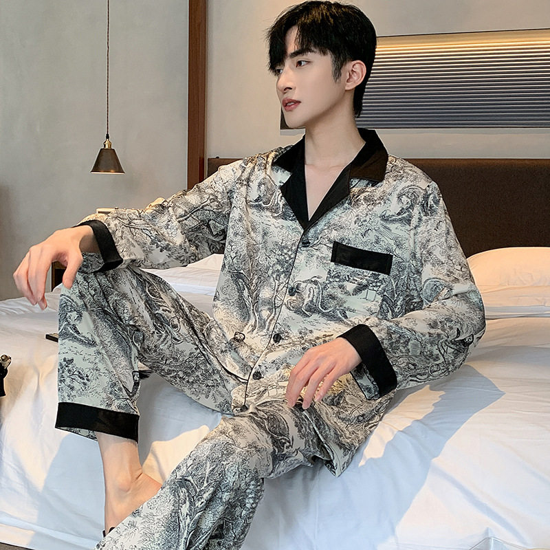 长袖 男式 高级感秋季 丝绸男款 冰丝睡衣男春秋款 家居服套装 2026新款