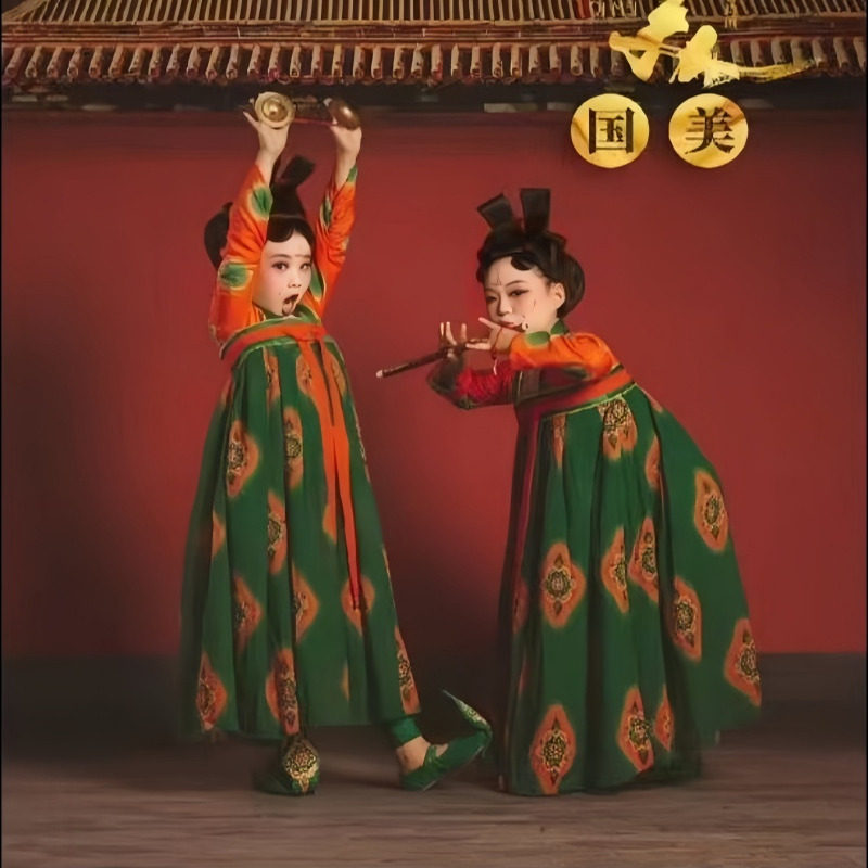 元 旦儿童中国风汉服演出服女童马面裙男童合唱表演服古典古风舞蹈