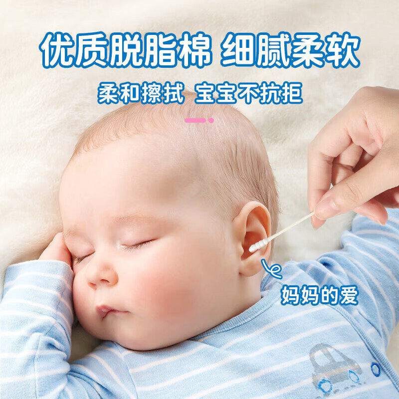 海氏海诺婴童棉签双头婴幼儿纸棒细头棉签棉棒宝宝新生儿耳鼻专用
