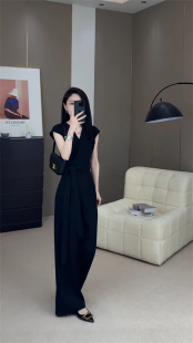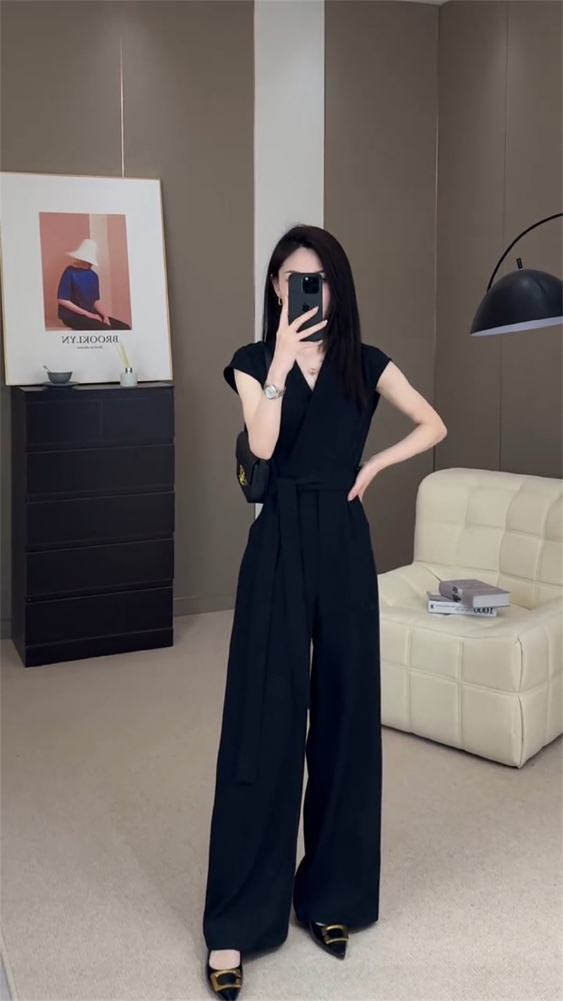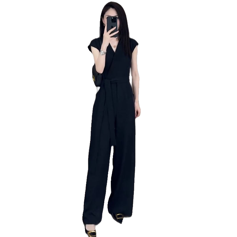 连体裤 时尚 女2025夏季 新款 法式 收腰显瘦直筒裤 轻奢设计感V领无袖