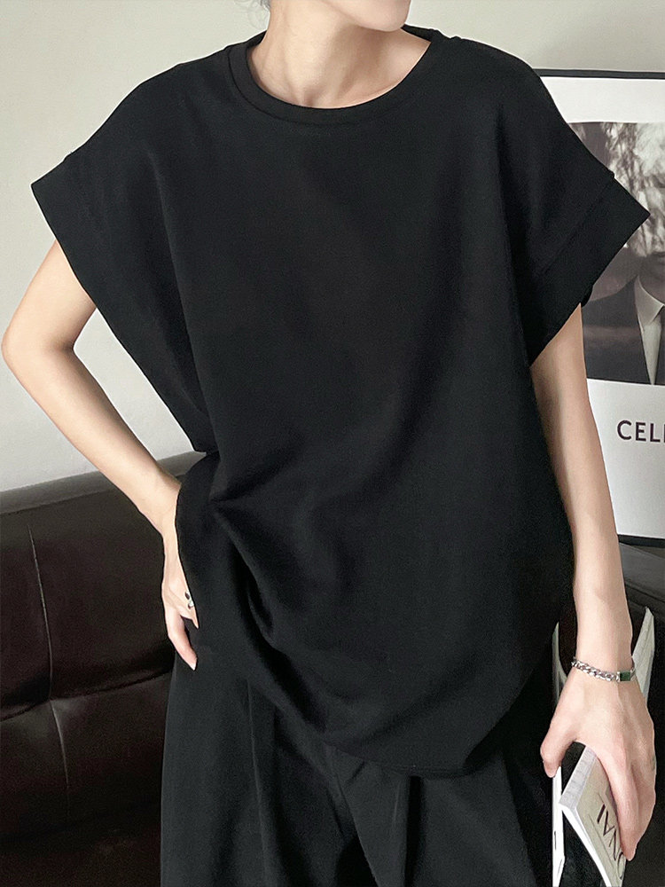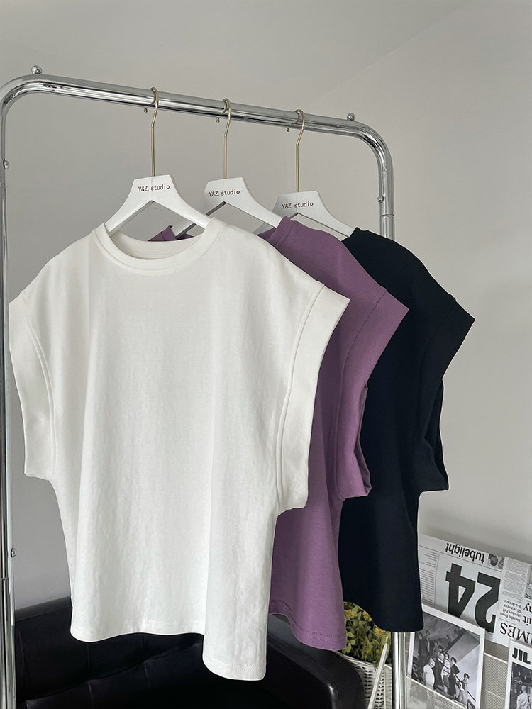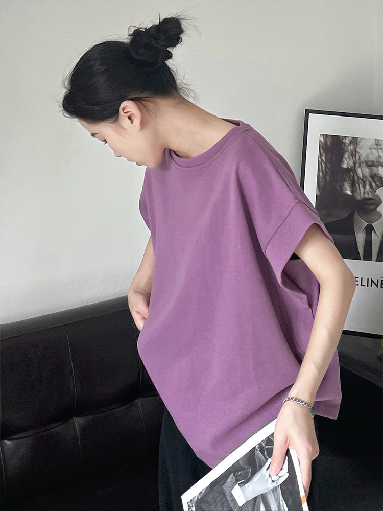 宽松小个子圆领蝙蝠袖 新款 纯棉上衣ins T恤女2024夏季 设计感短袖