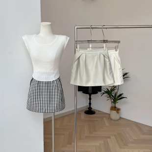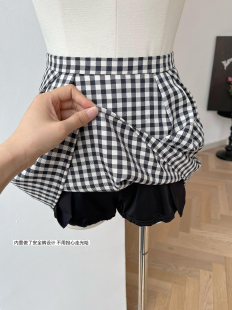 小短裙花苞廓形纯色 巴黎橱窗超好搭 格子A字半身裙 麻豆 娜娜家