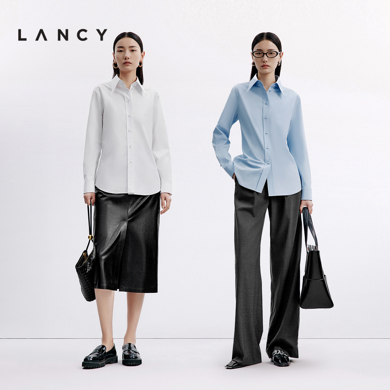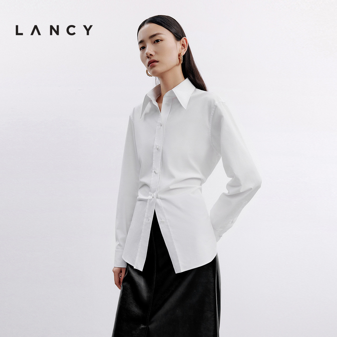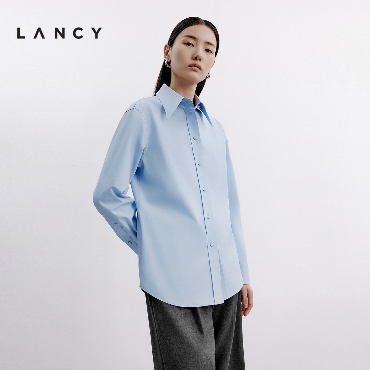 宋佳同款 衬衫 LANCY 百搭通勤长袖 女简约质感翻领 朗姿2024秋季
