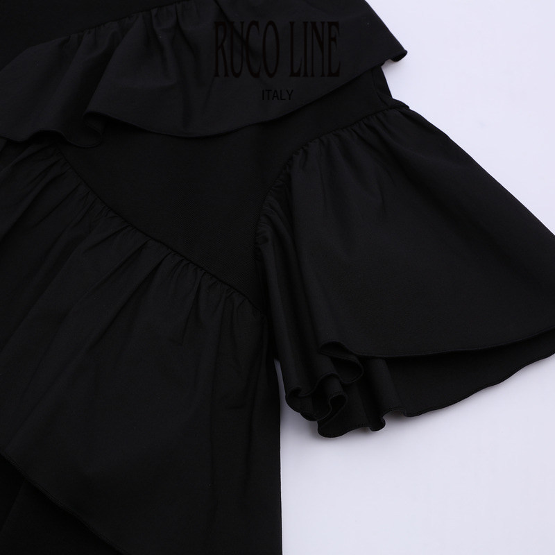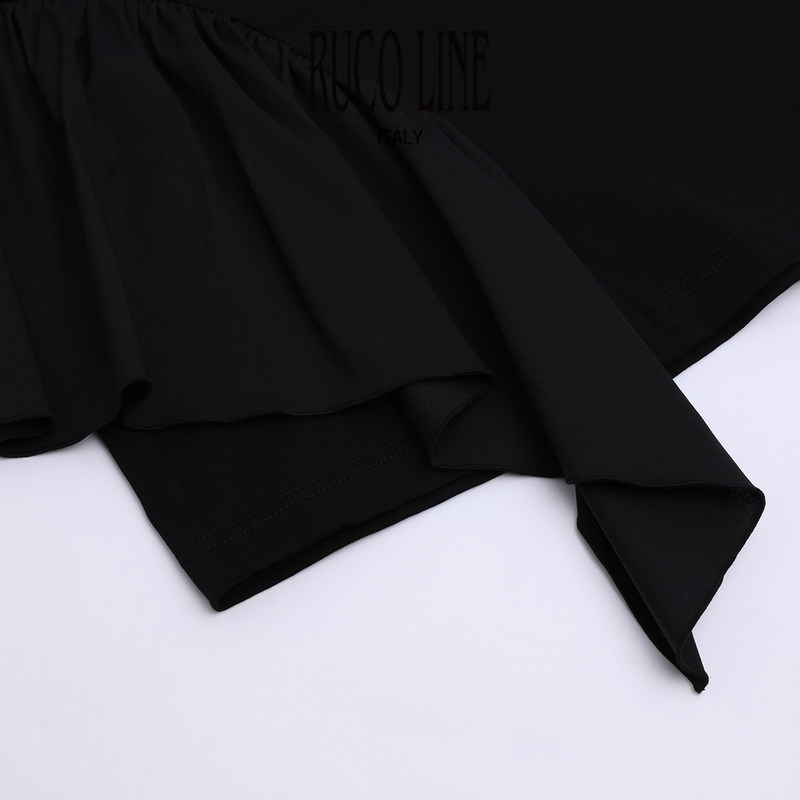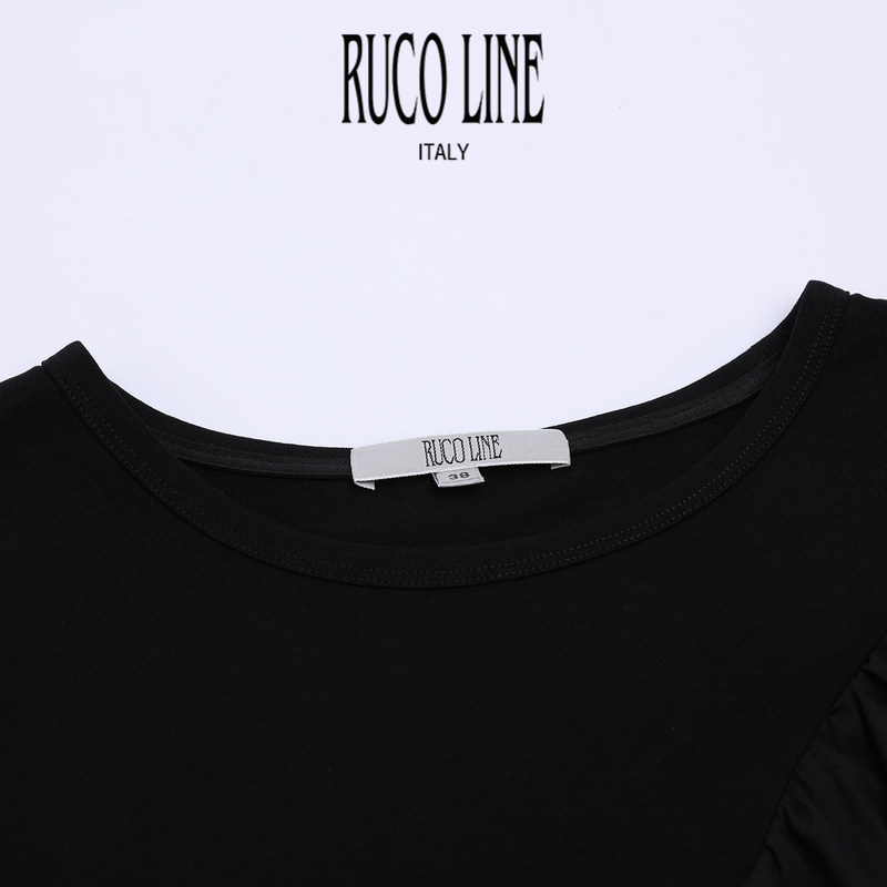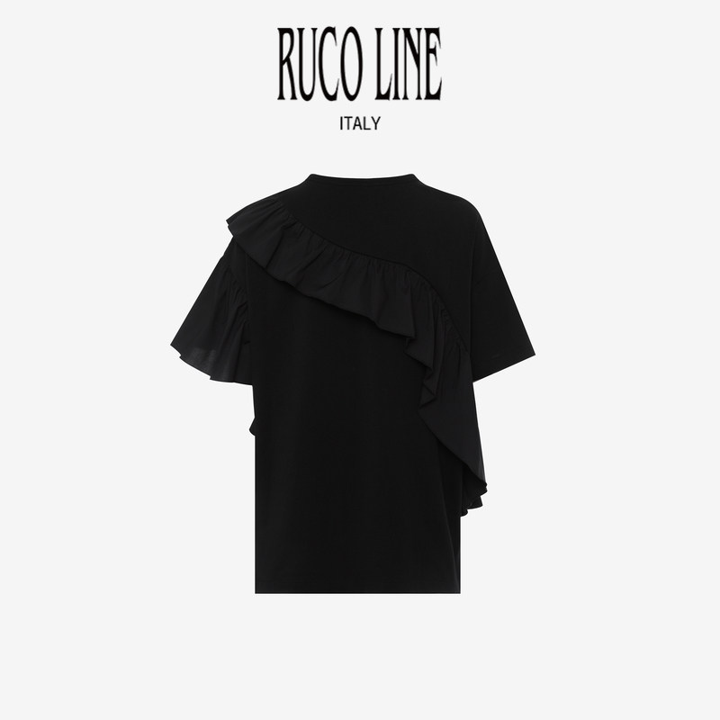 短袖 Line如卡莱轻奢新款 Ruco 纯棉T恤女士不对称荷叶边 棉