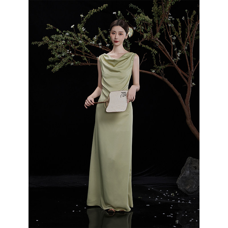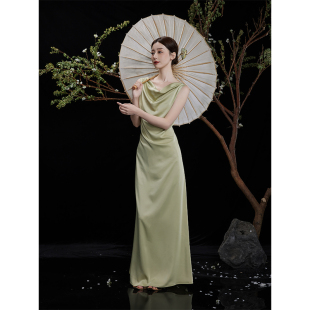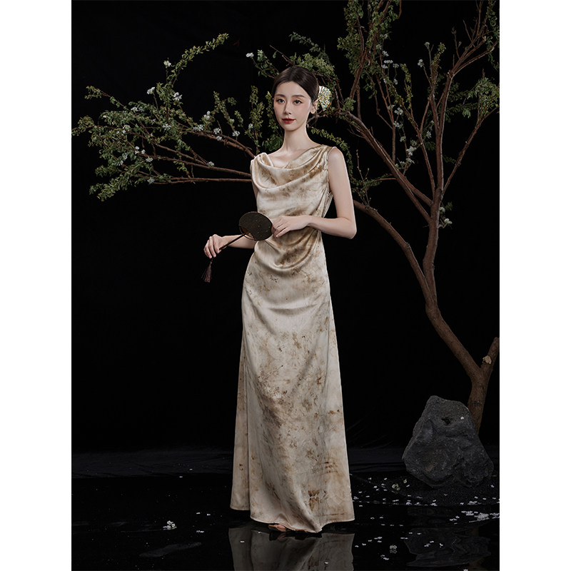 荡领无袖 新中式 连衣裙 2024新款 H型印花包臀裙 ONMOON 修身 夏季
